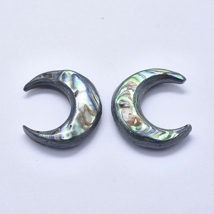 Natural Abalone Shell/Paua Shell Cabochons, Moon,