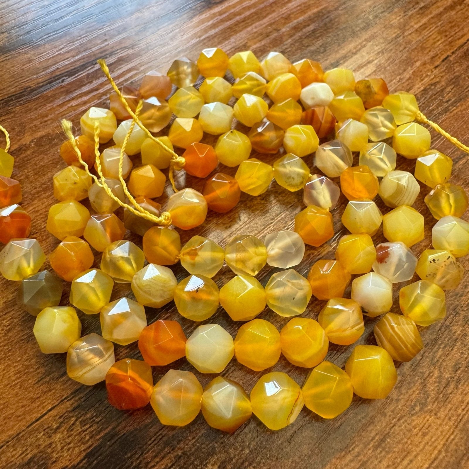 2 Strands - 7-8mm Faceted Star Cut Yellow Agate Bead Strands