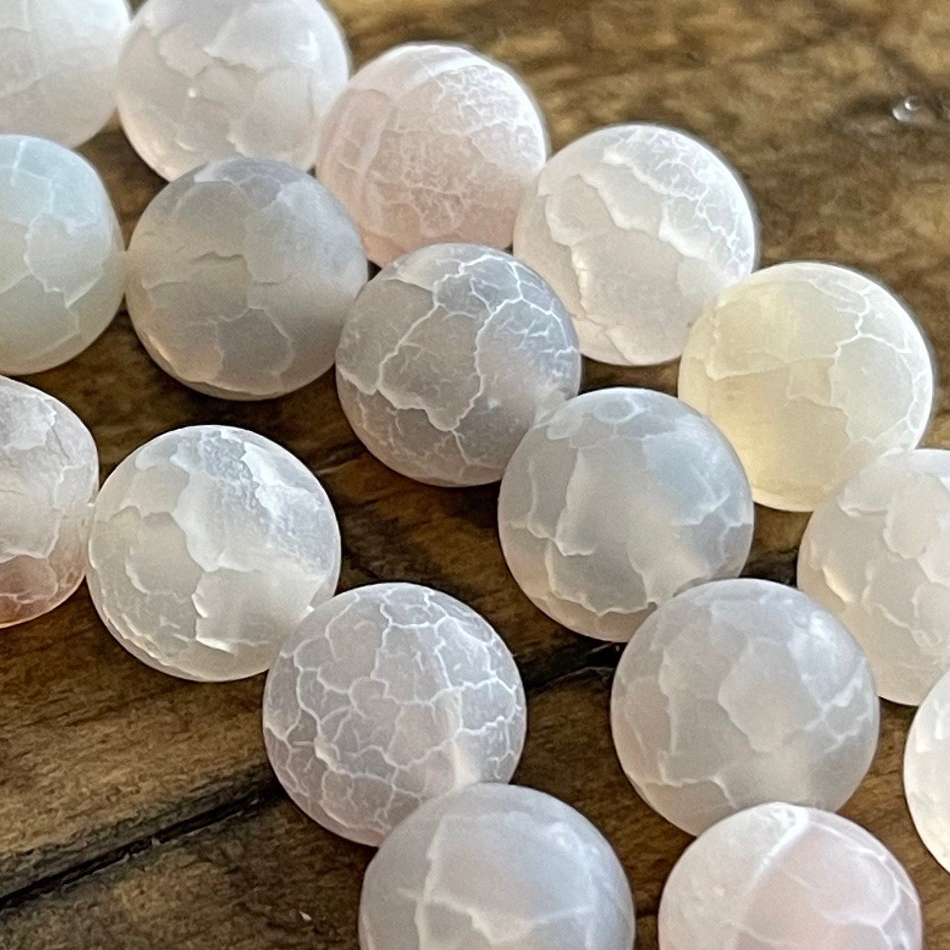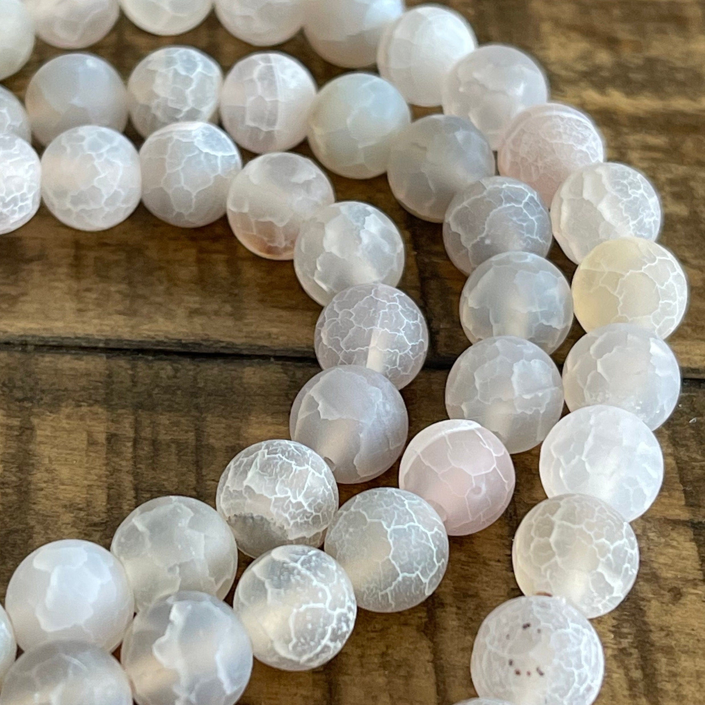 Natural & Dyed Crackle Agate Bead Strands, Frosted Style, Round, Light Grey