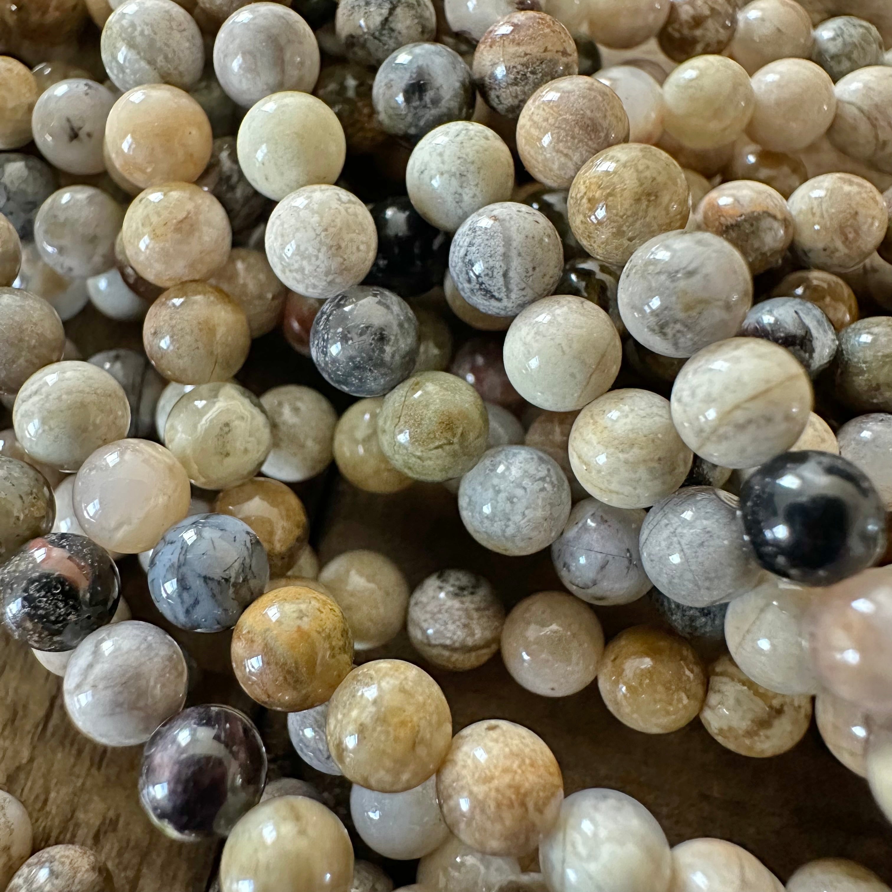 Size: about 4mm in diameter, hole: 0.7mm; about 90pcs/strand, 15.5 inch