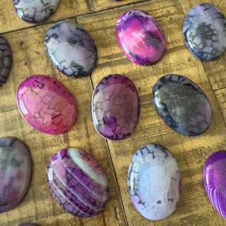 Oval Dark Pink Dragons Vein Agate Cabochon 30x40mm
