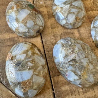 Oval Brass Lined Light Blue Chalcedony Agate Cabochon 18x25mm
