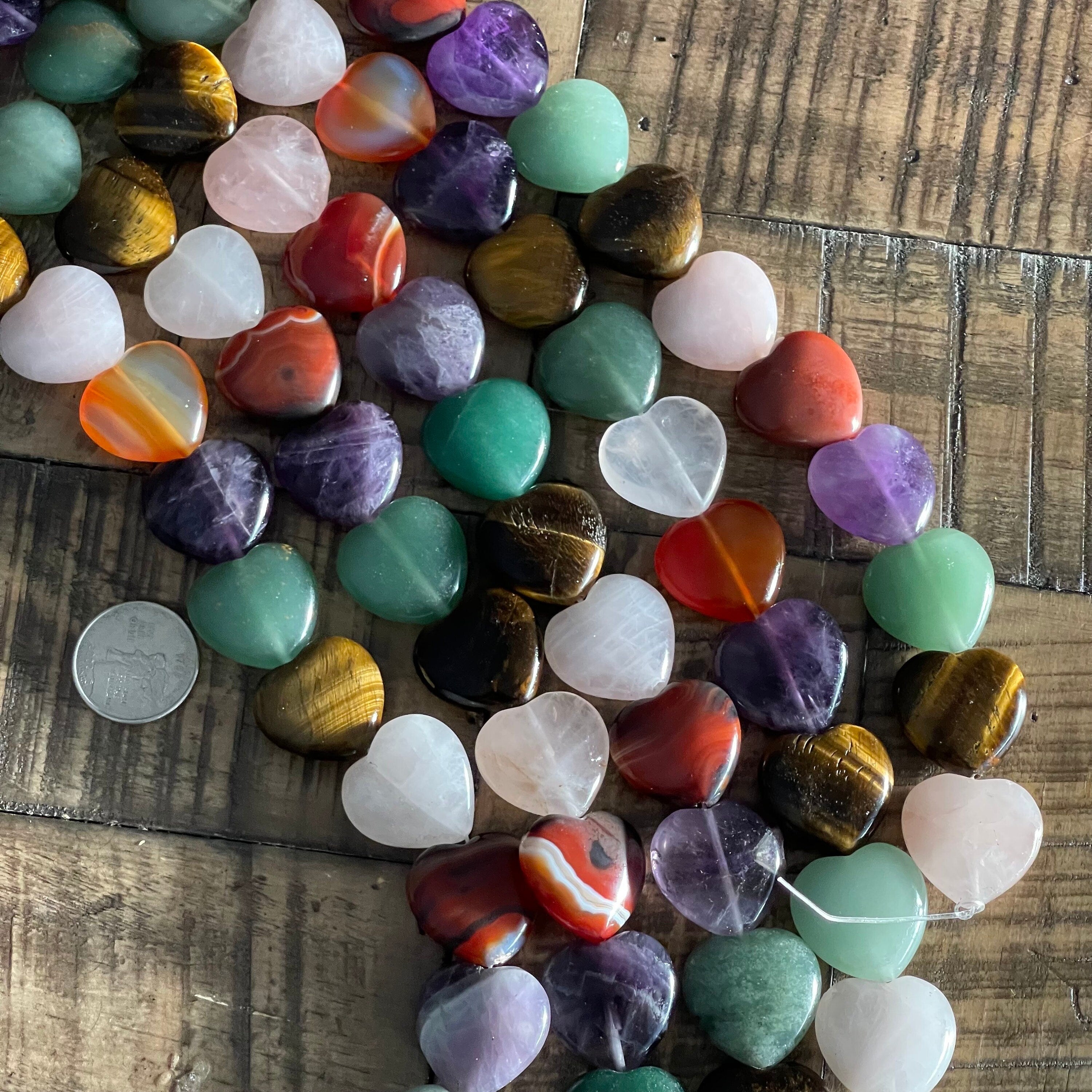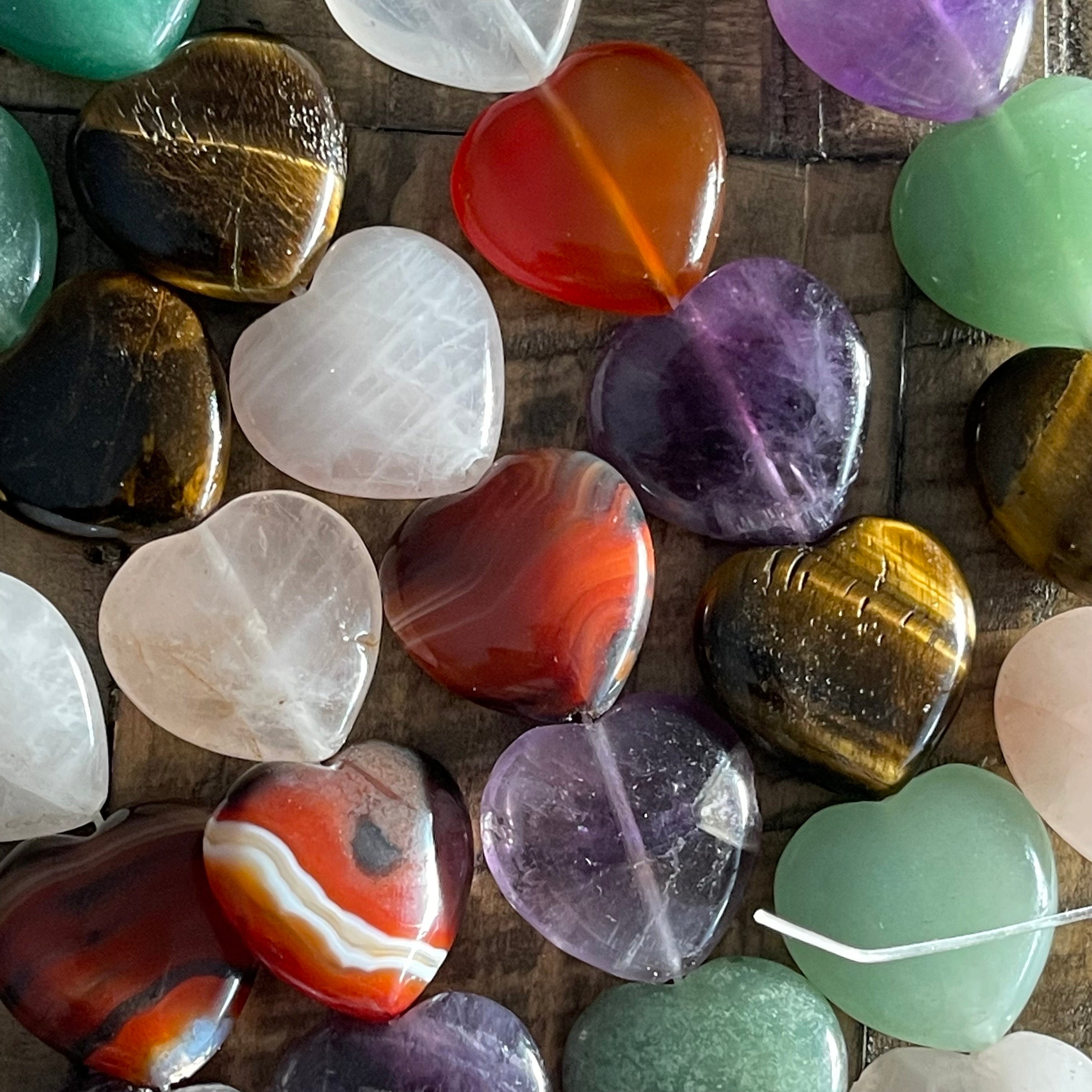 Beautiful assorted gemstone-shaped hearts perfect for bracelets, necklaces, wire wrapping and more. Create an entire gemstone collection.
