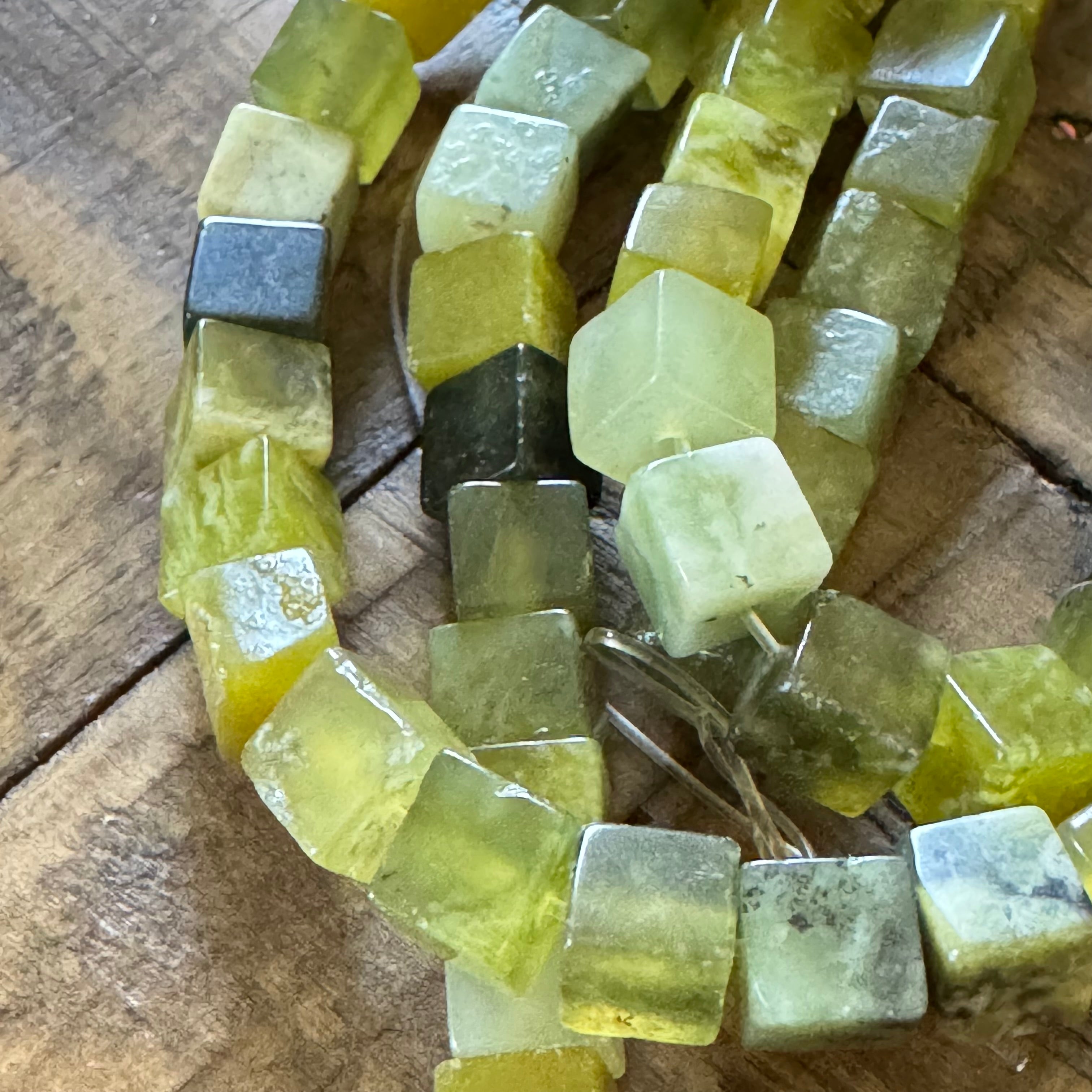 Size: about 6~6.5mm long, 6~6.5mm wide, 6~6.5mm thick, hole: 0.9~1mm, about 57~63pcs/strand, 14.53~15.35''