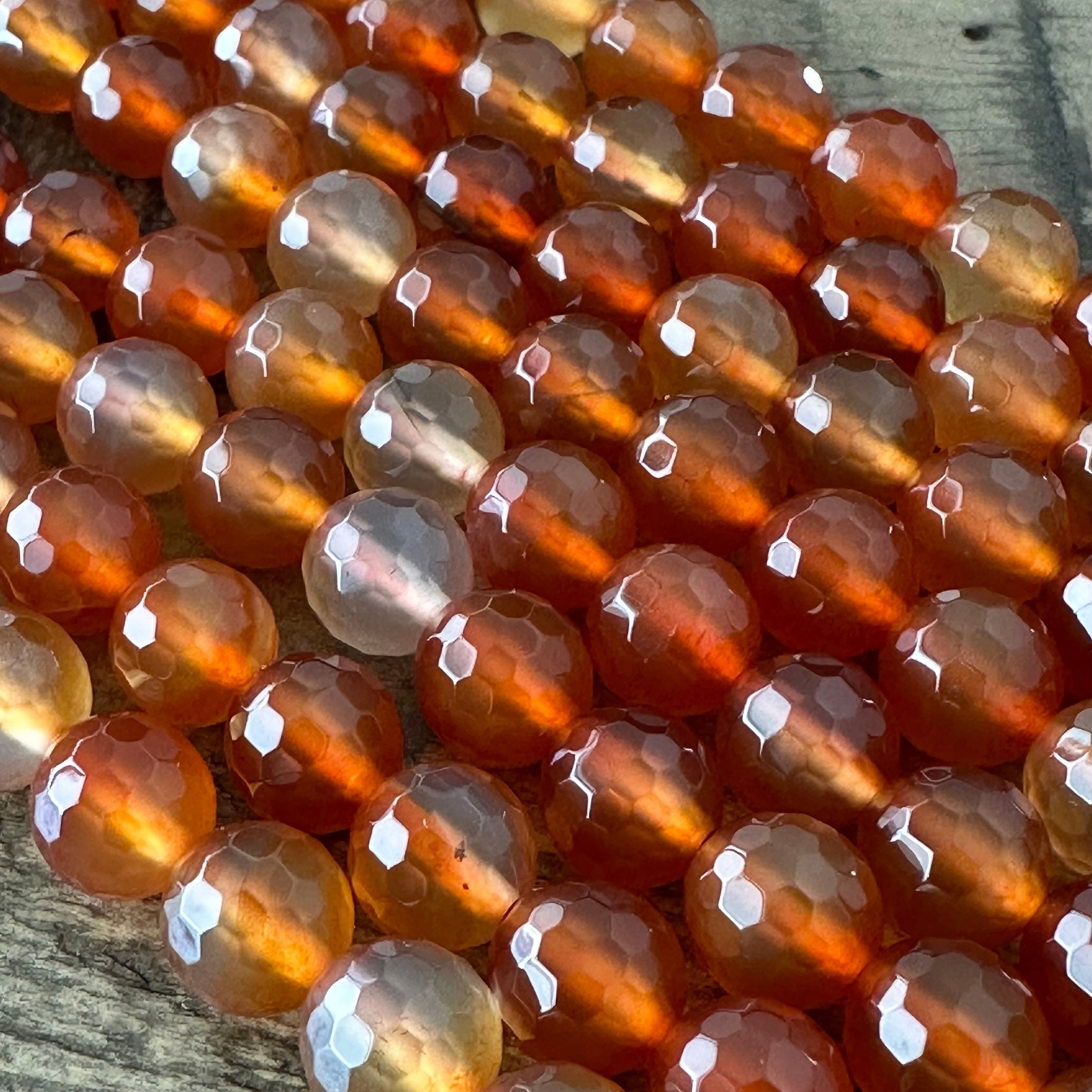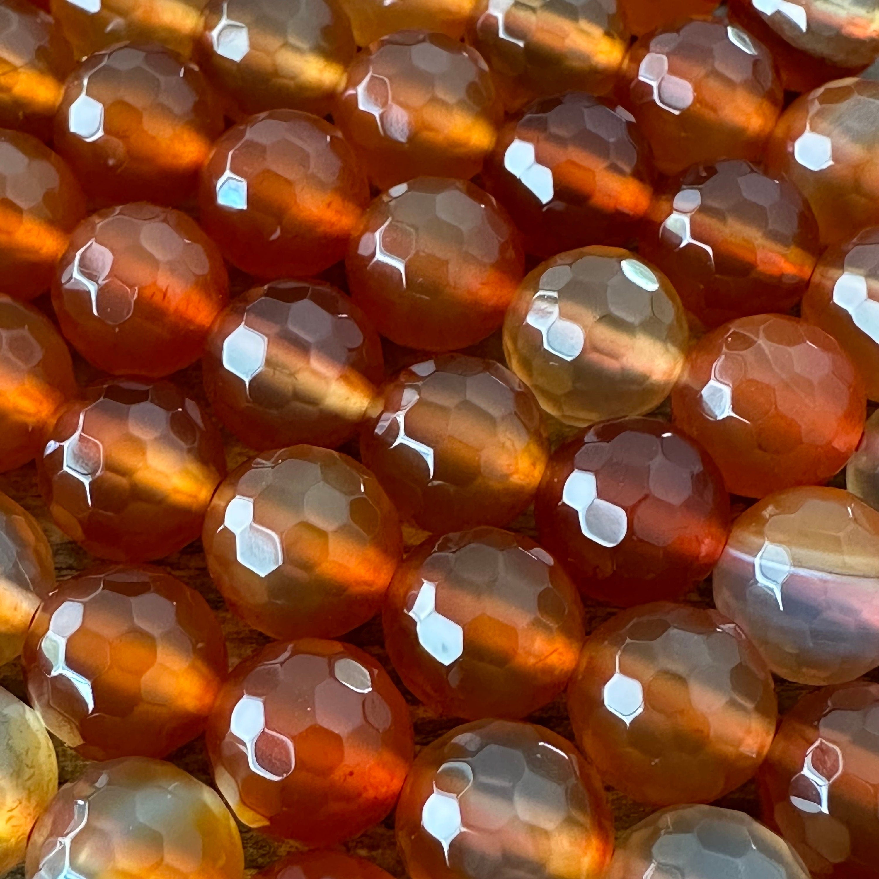 128 Faceted Orange Carnelian Bead Strand - 6.5mm - 8mm