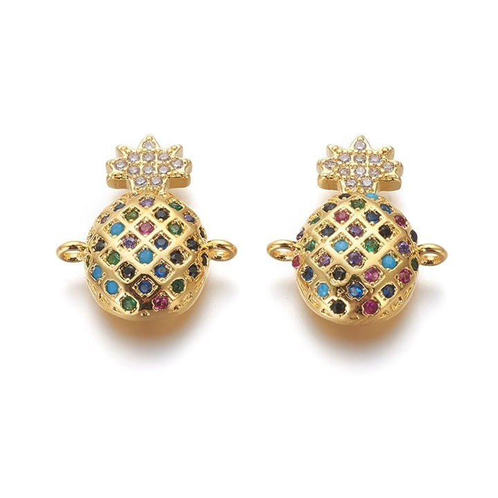 Gold Color Brass Micro Pave Cubic Zirconia Pineapple Charm Links, Lead Free & Cadmium Free,