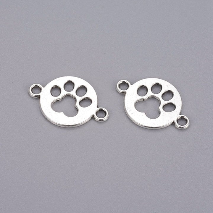 Dog Paw Print Alloy Link Connectors Tibetan Style Flat Round, Cadmium Free & Lead Free, Antique Silver