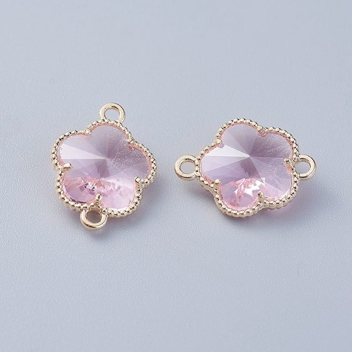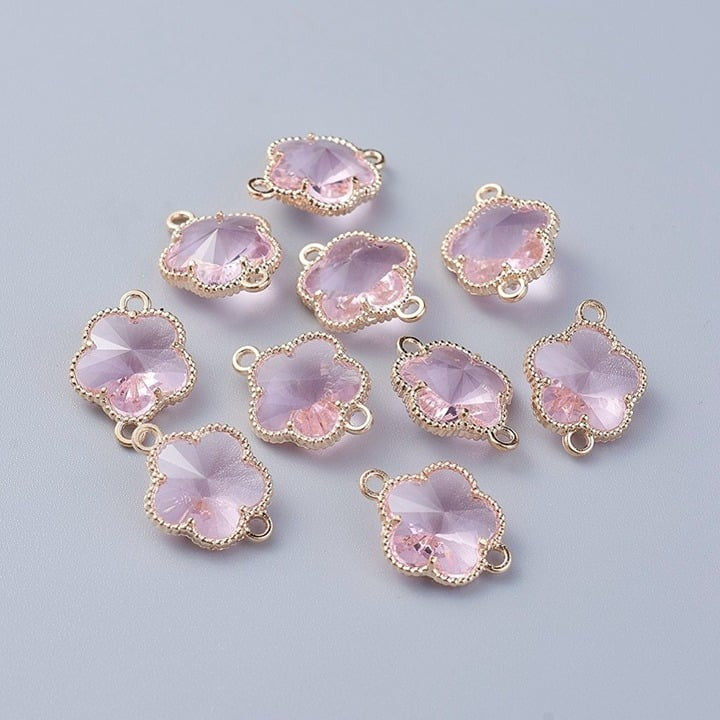 5pc Gold & Pink Flower Glass Link Connectors 12x15mm