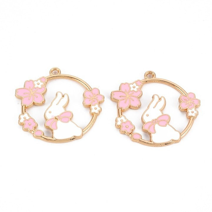 10pc Easter Bunny with Flowers & Ring Alloy Enamel Pendants
