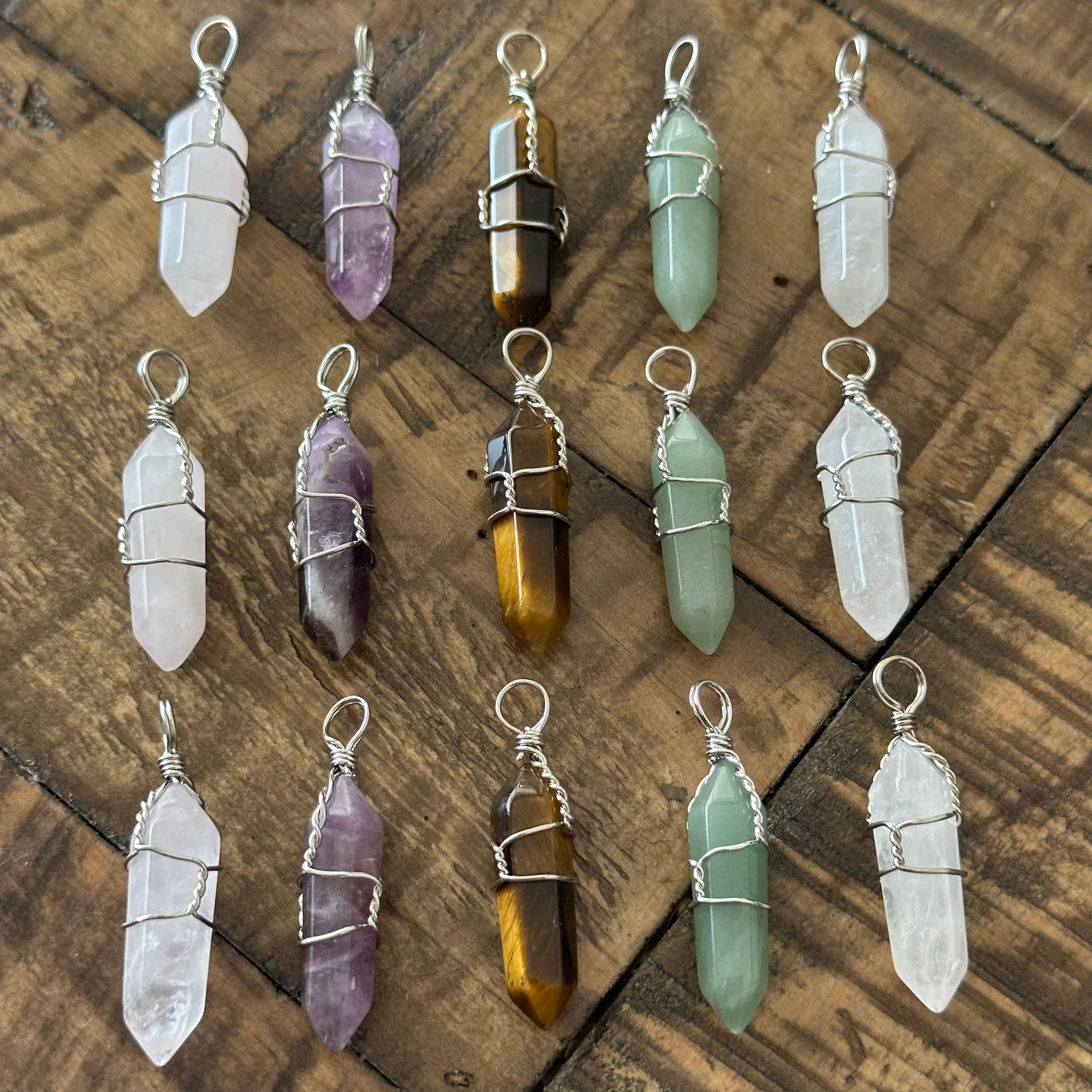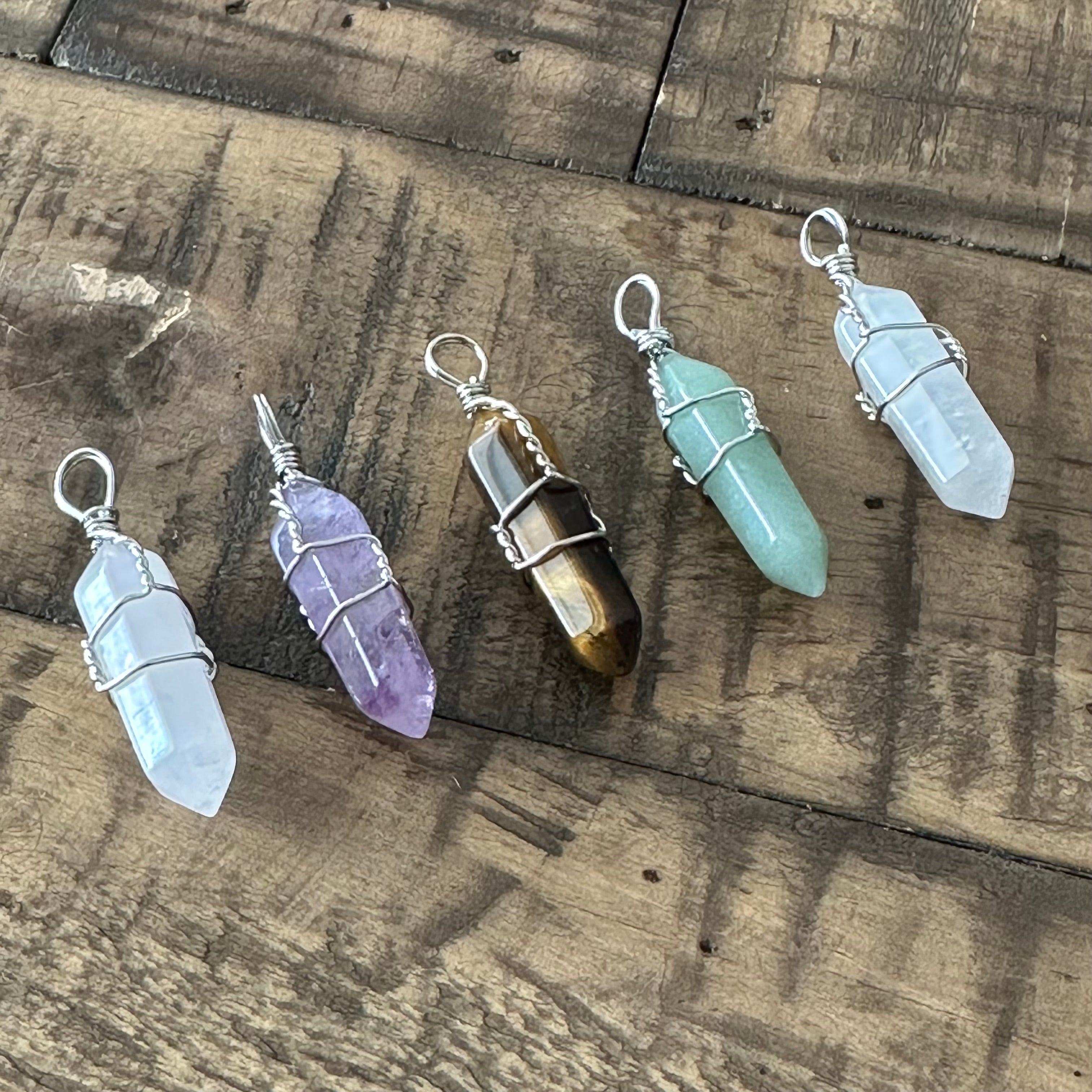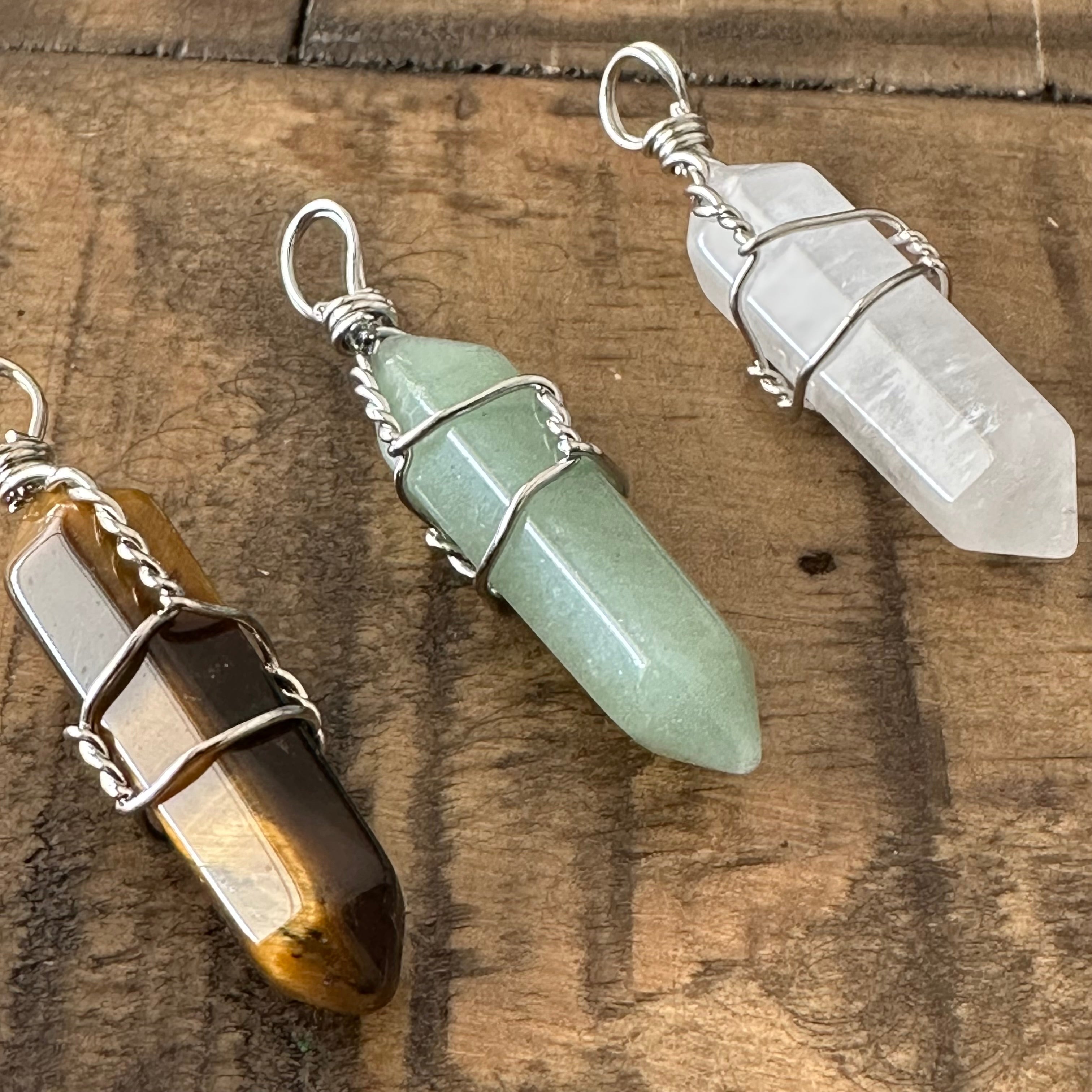 Assorted Gemstone Double Terminated Point Pendants - Wire-Wrapped Gemstones
