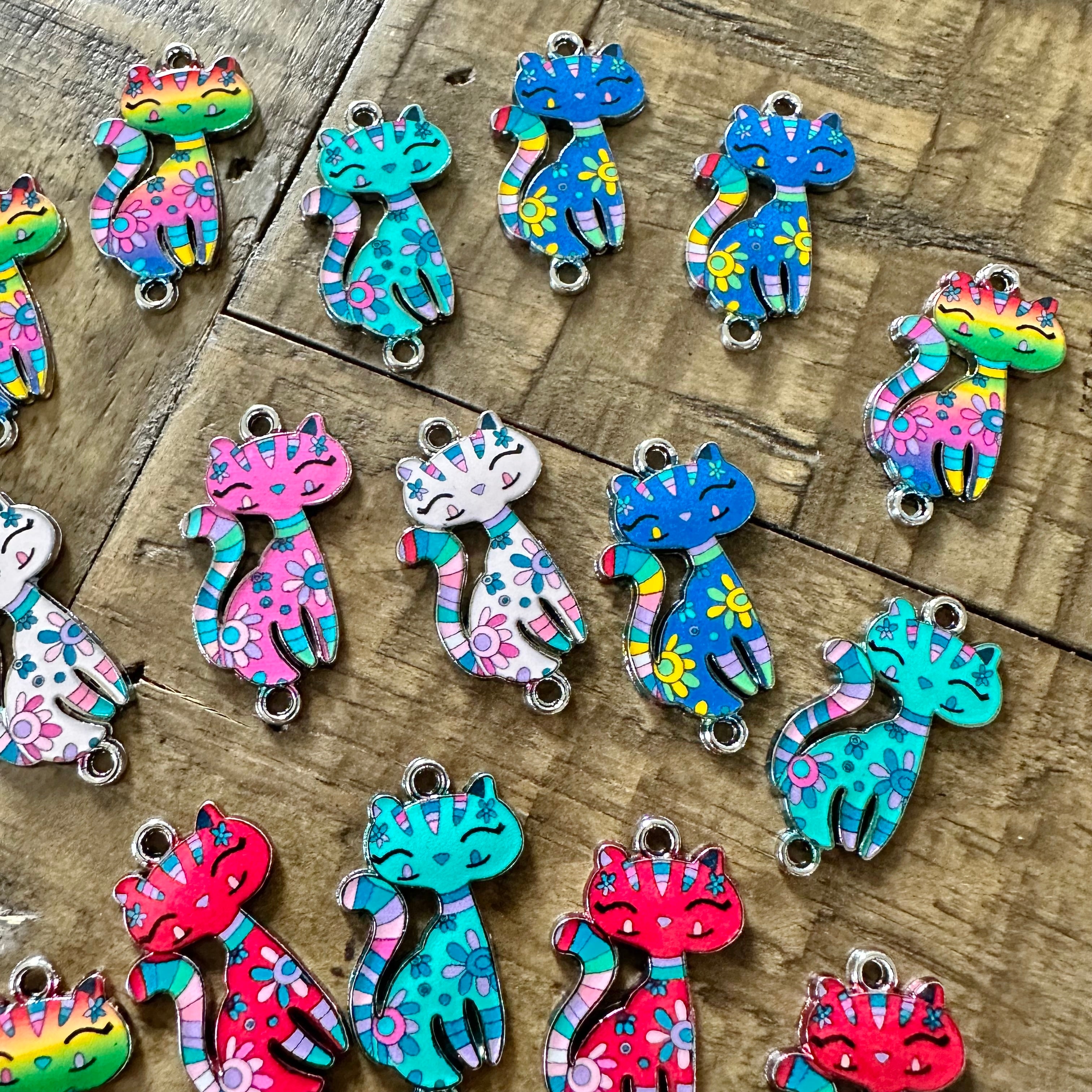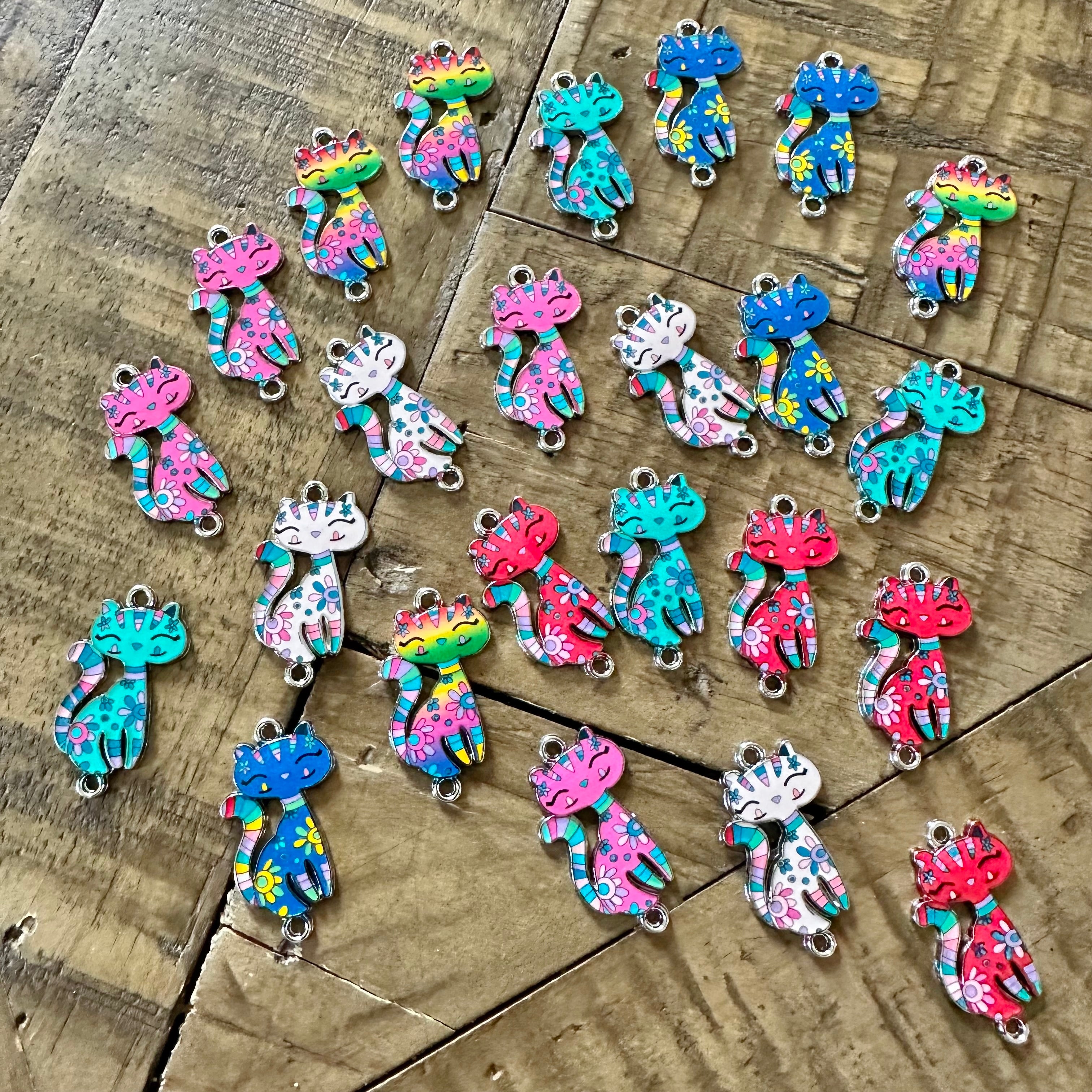 Alloy Kitten Connector Charms, Cartoon Cat Links, Platinum, with Enamel, Mixed Color