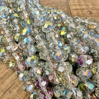 Transparent Rainbow Clear Glass Faceted Round Bead Strand - 8mm