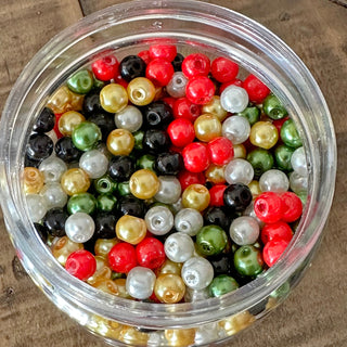 300pc 6mm Christmas Glass Pearl Beads - 5 colors
