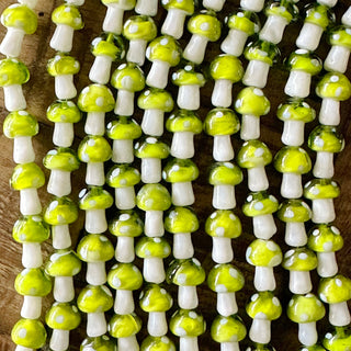 16mm Mushroom Bead Strand - Green Yellow