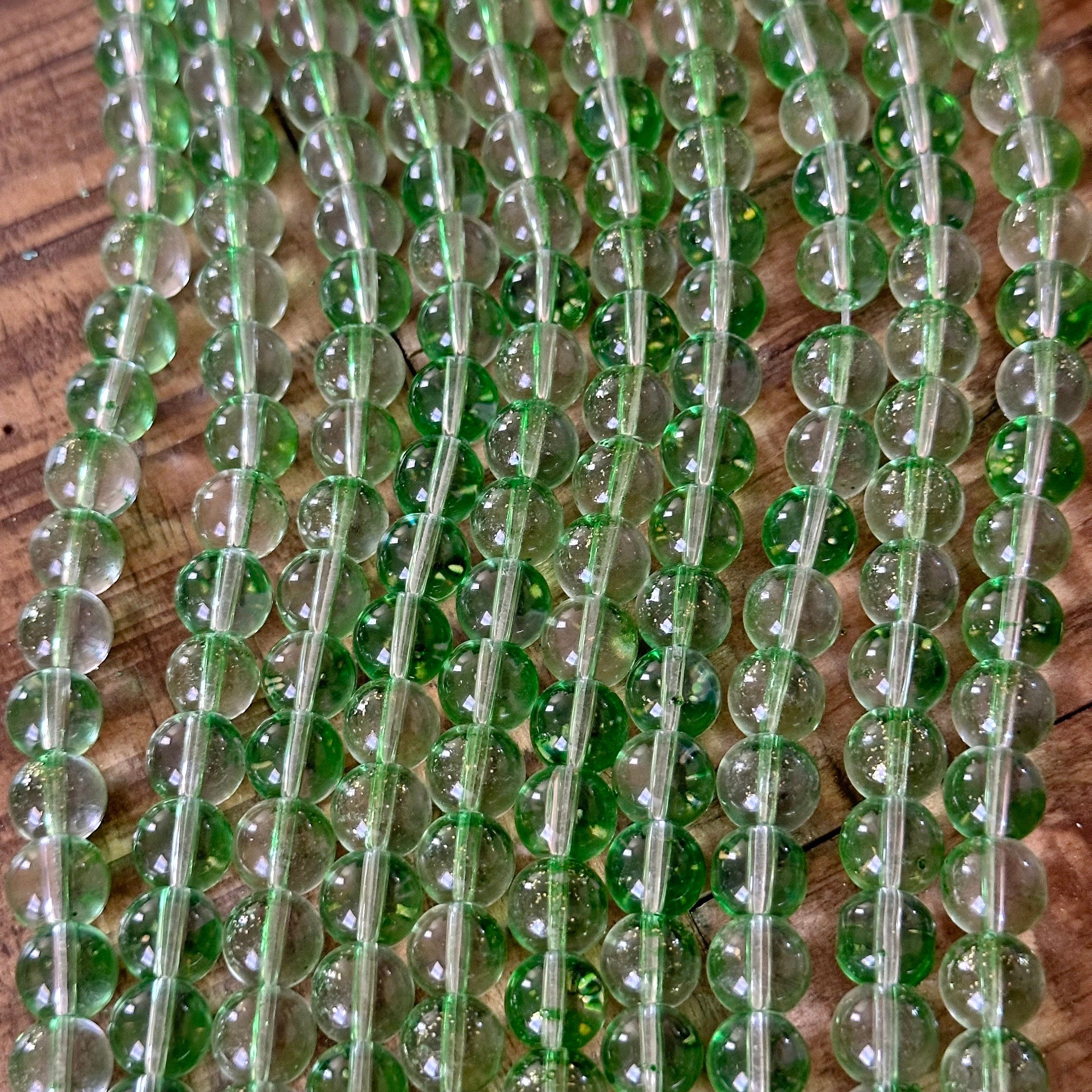 10mm Transparent Lime Green Golden Foil Glass Beads