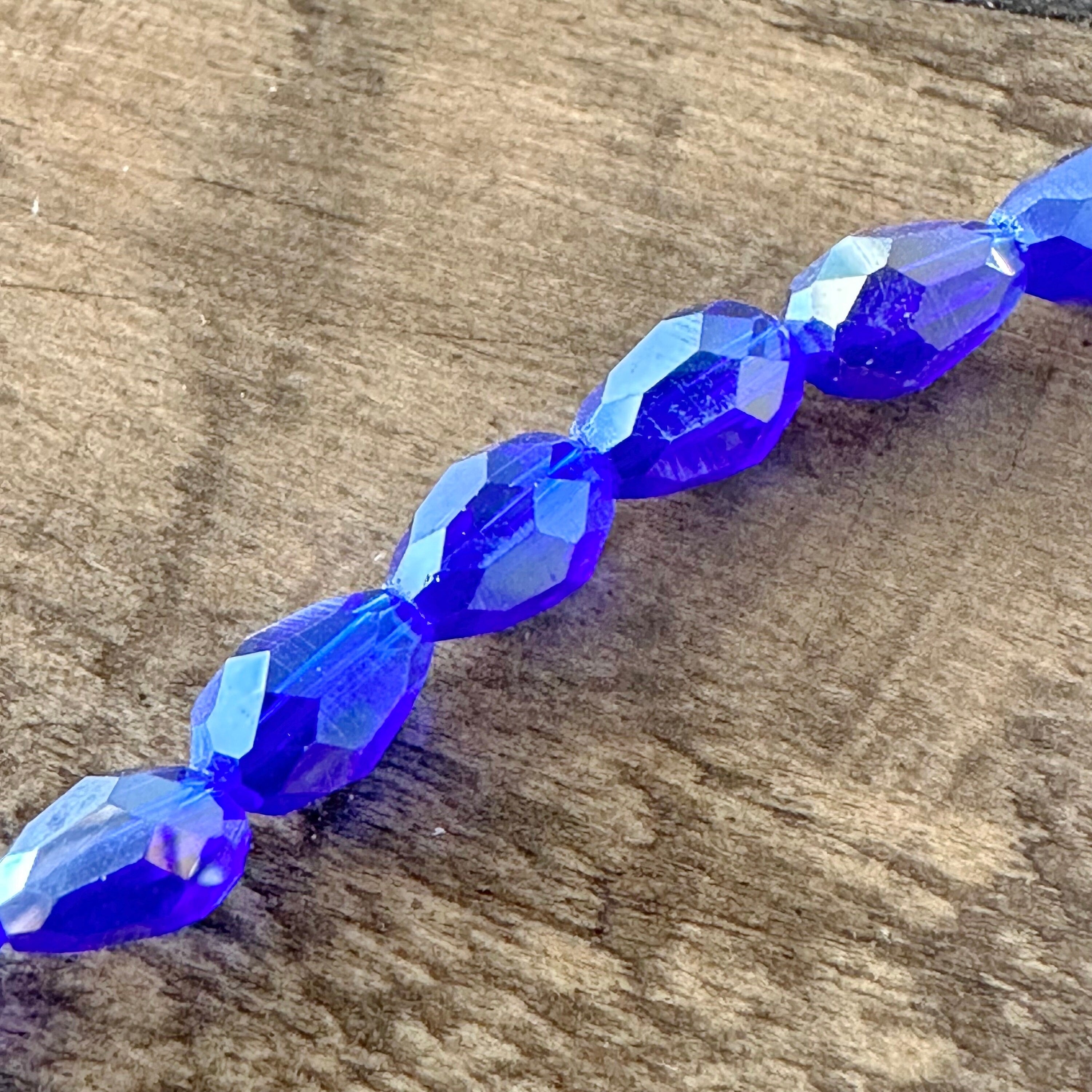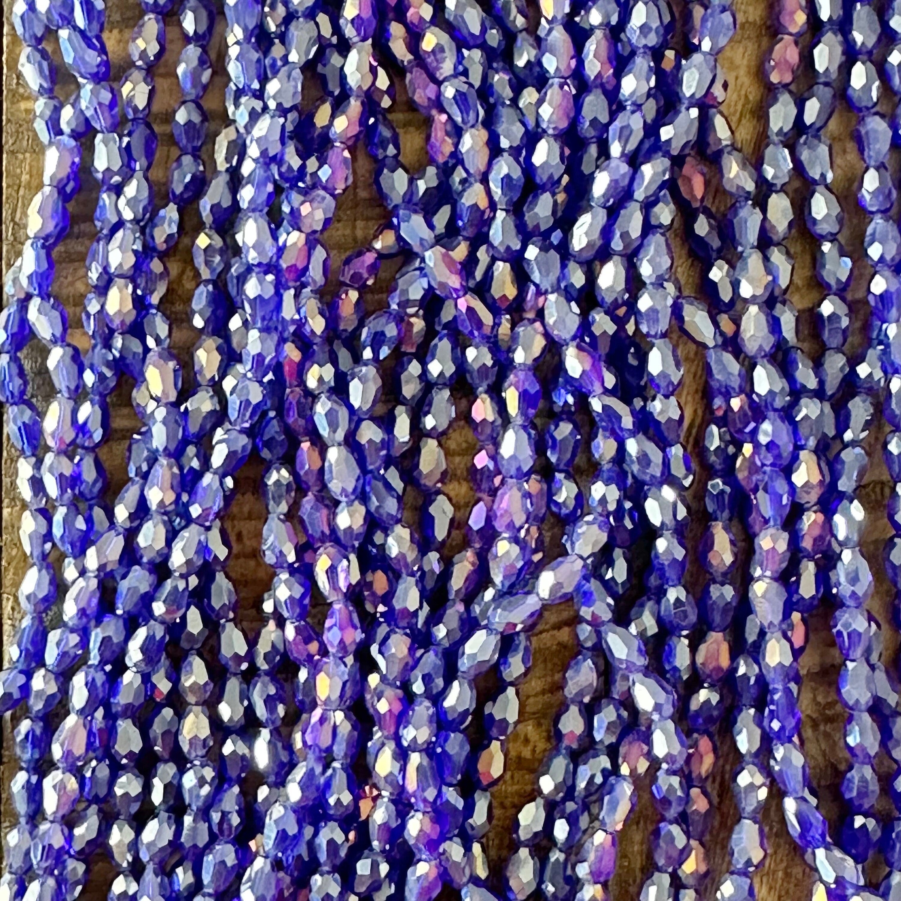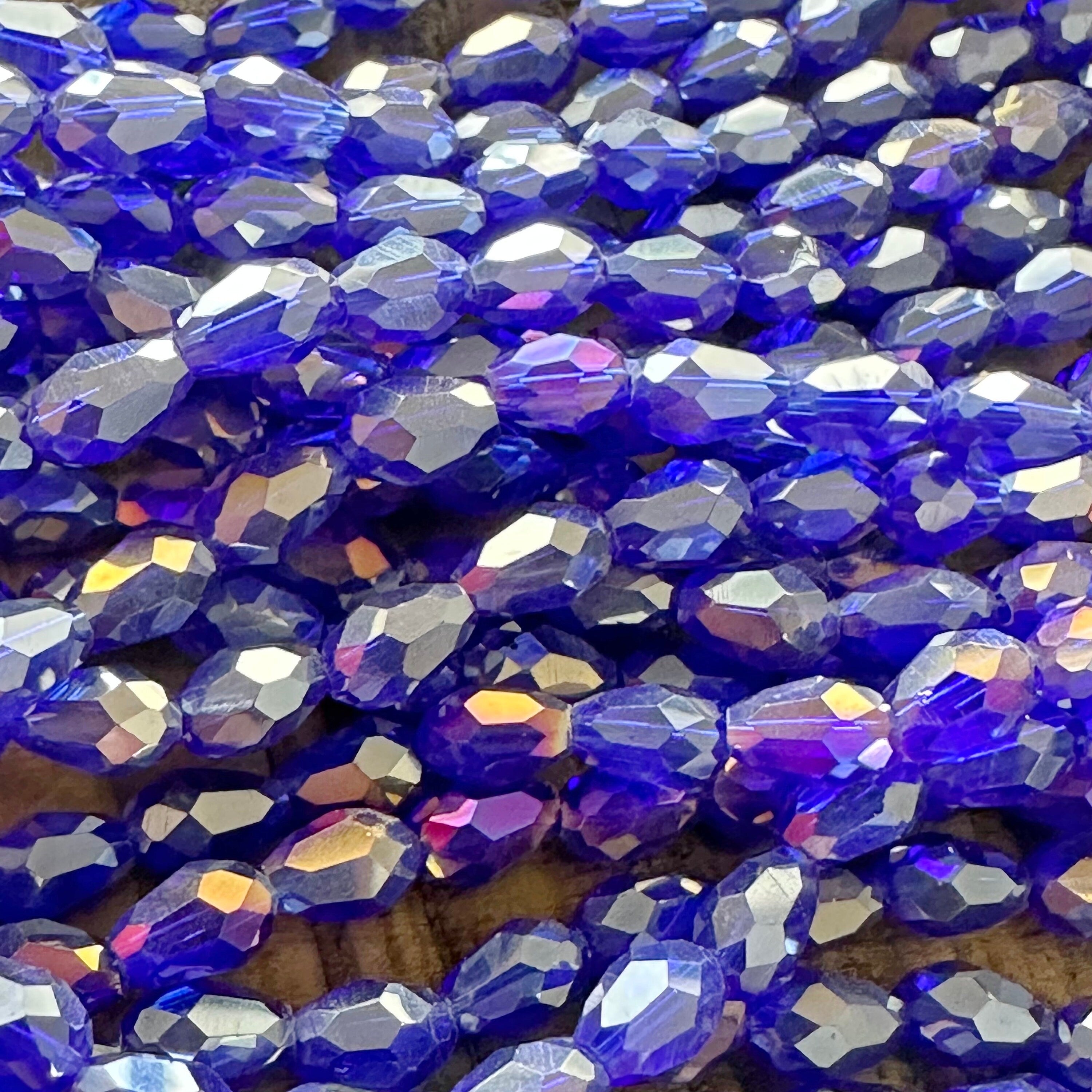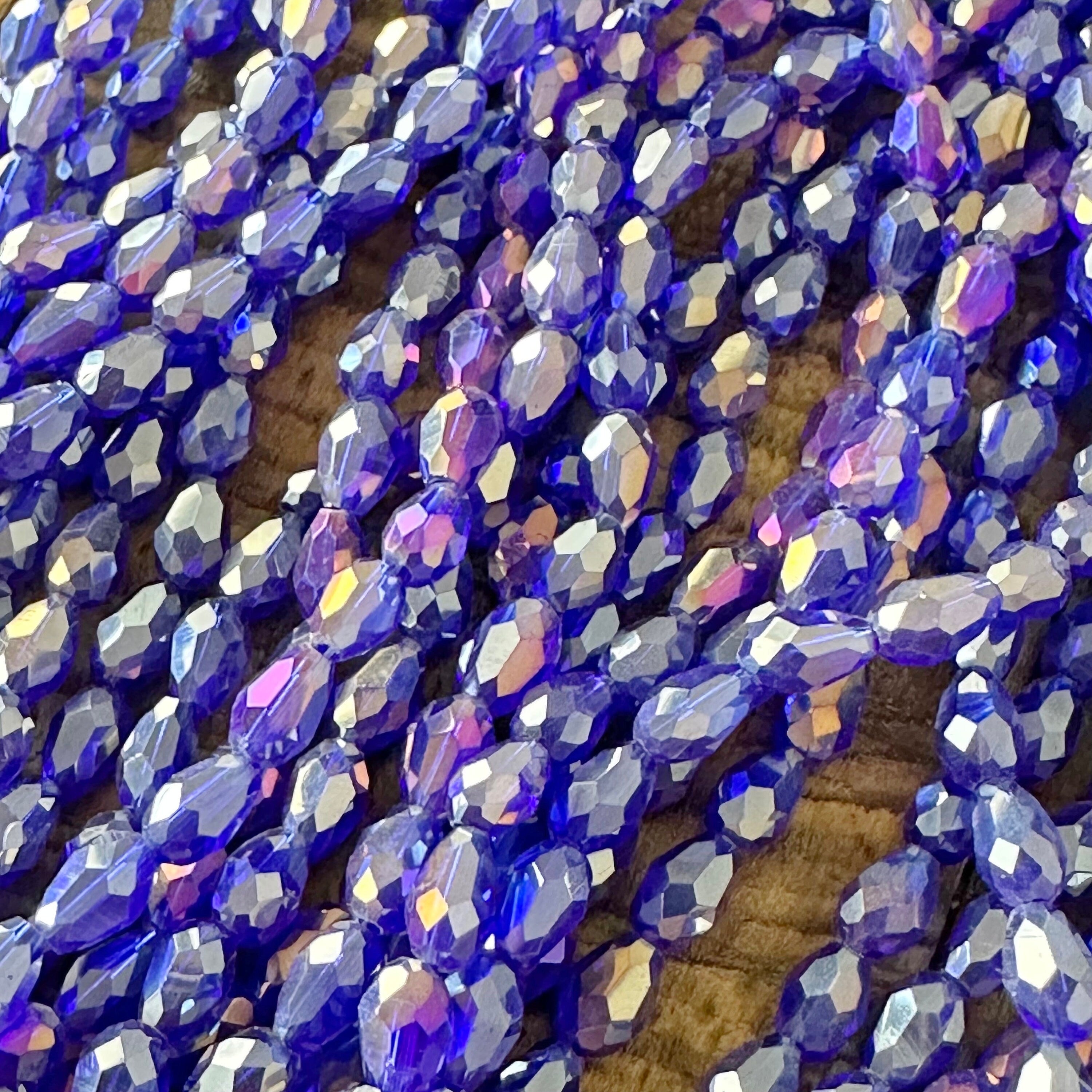 4mm Electroplated Faceted Teardrop Glass Bead Strands - Clear AB - Blue