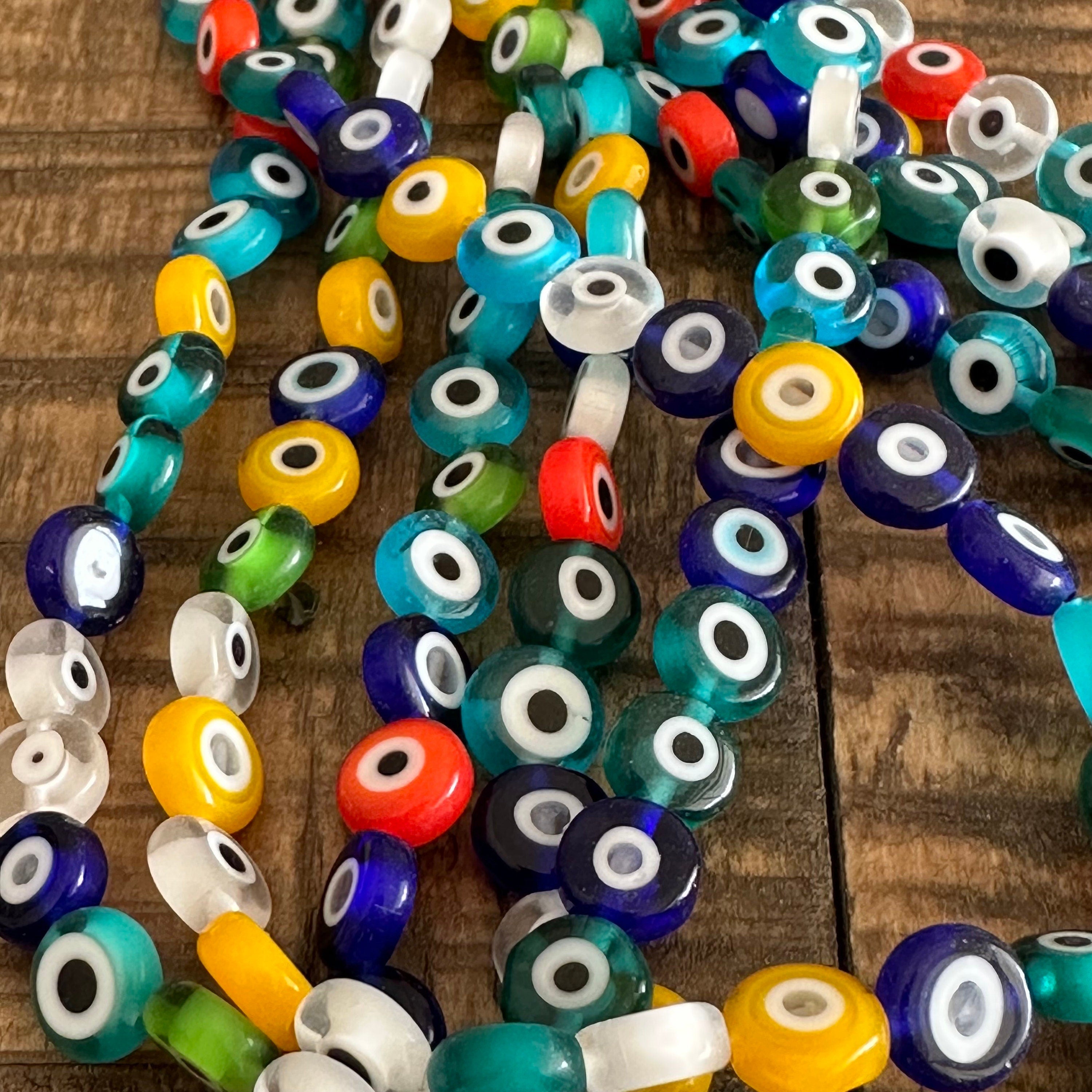 8mm Evil Eye Bead Strands - Flat Round Lampwork