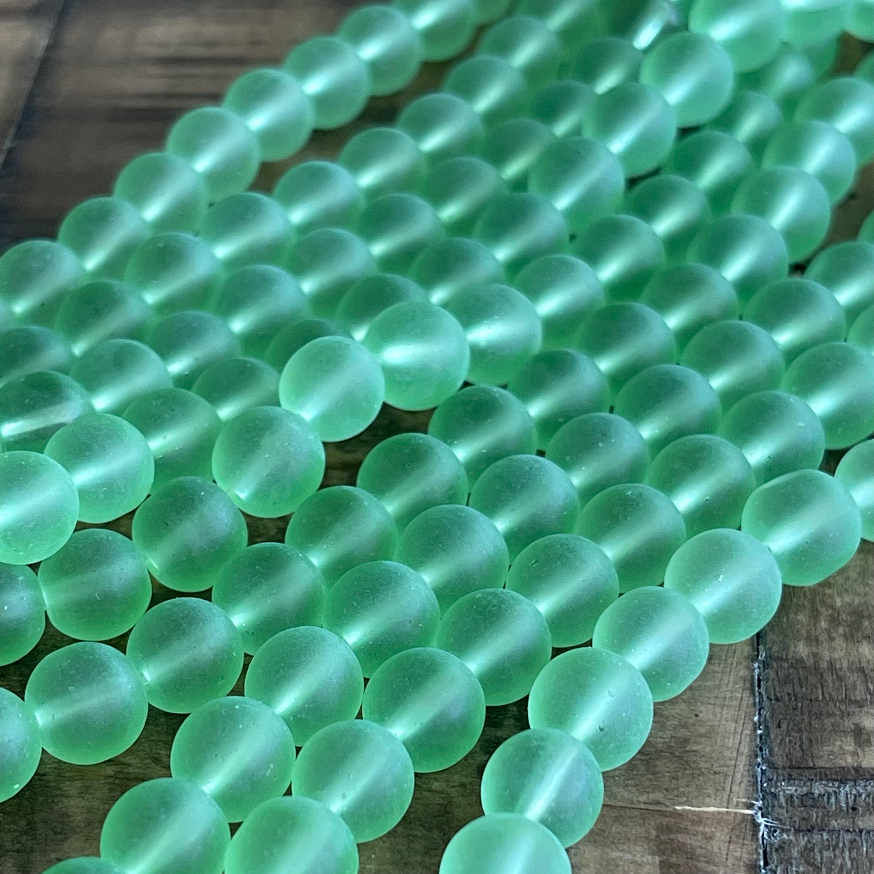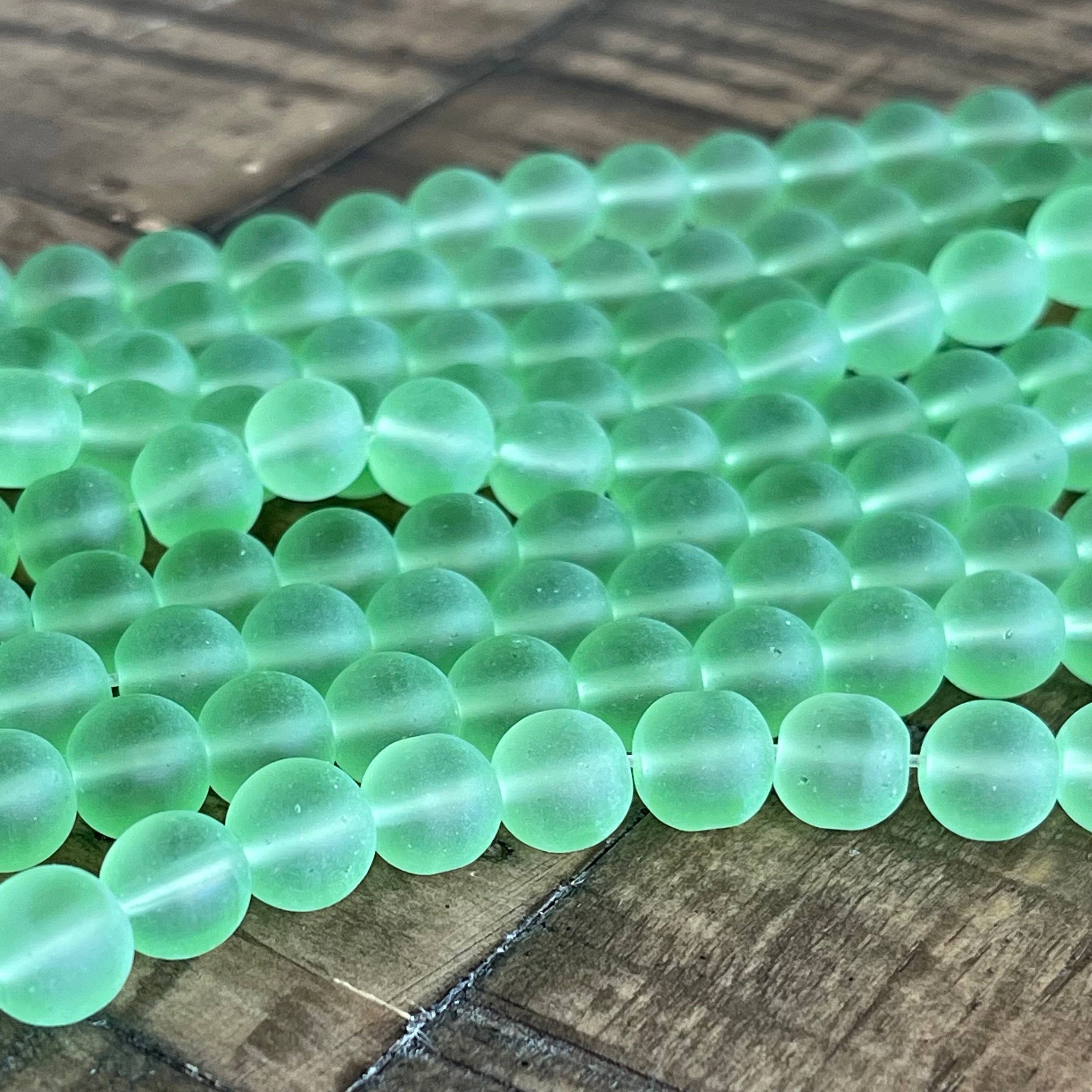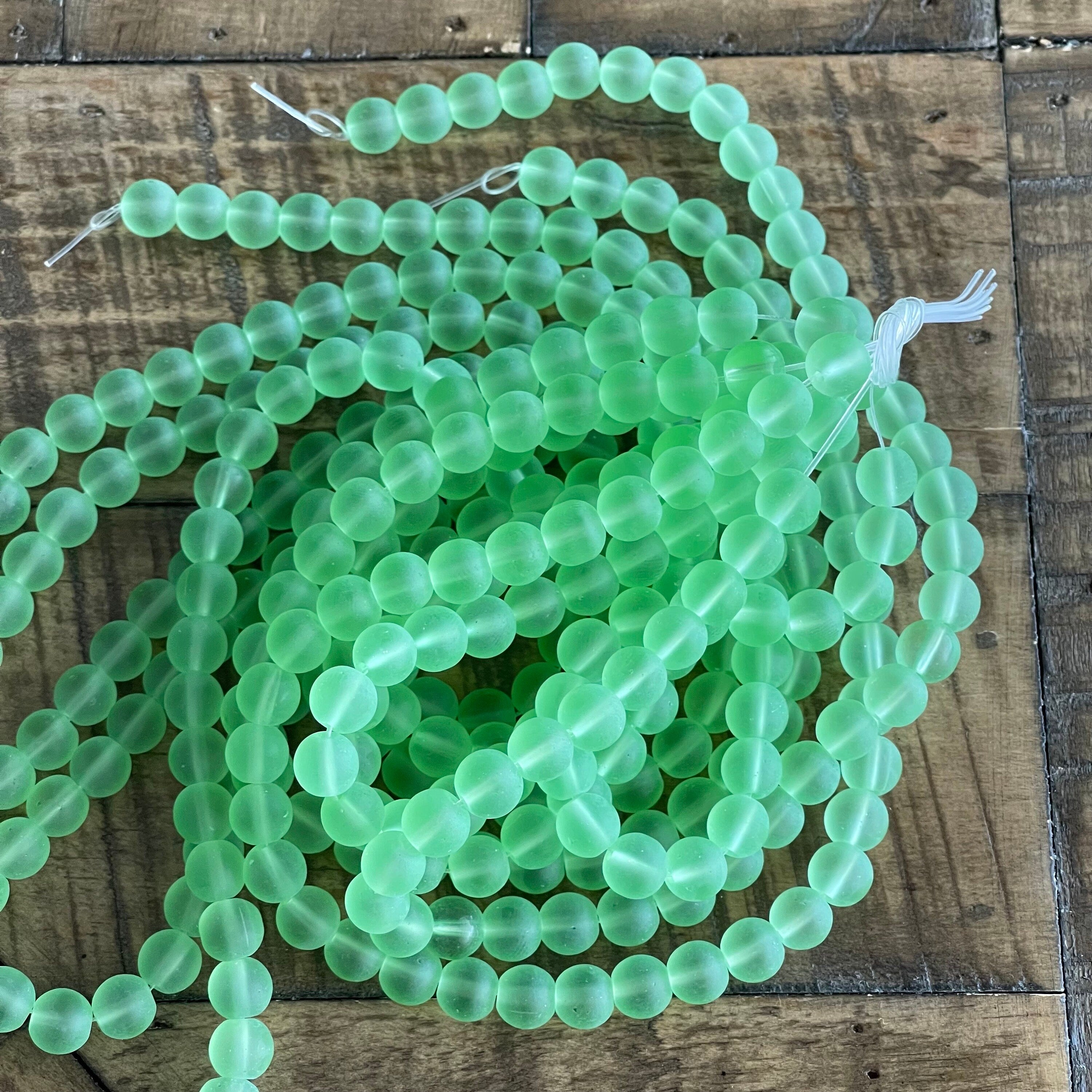 8mm Frosted Lime Green Glass Bead Strand