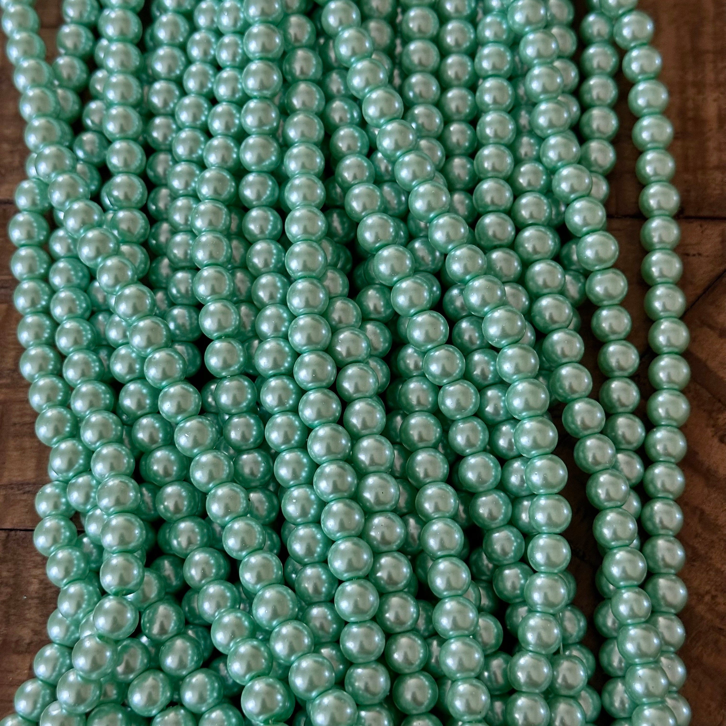 8mm Light Green Glass Pearl Beads