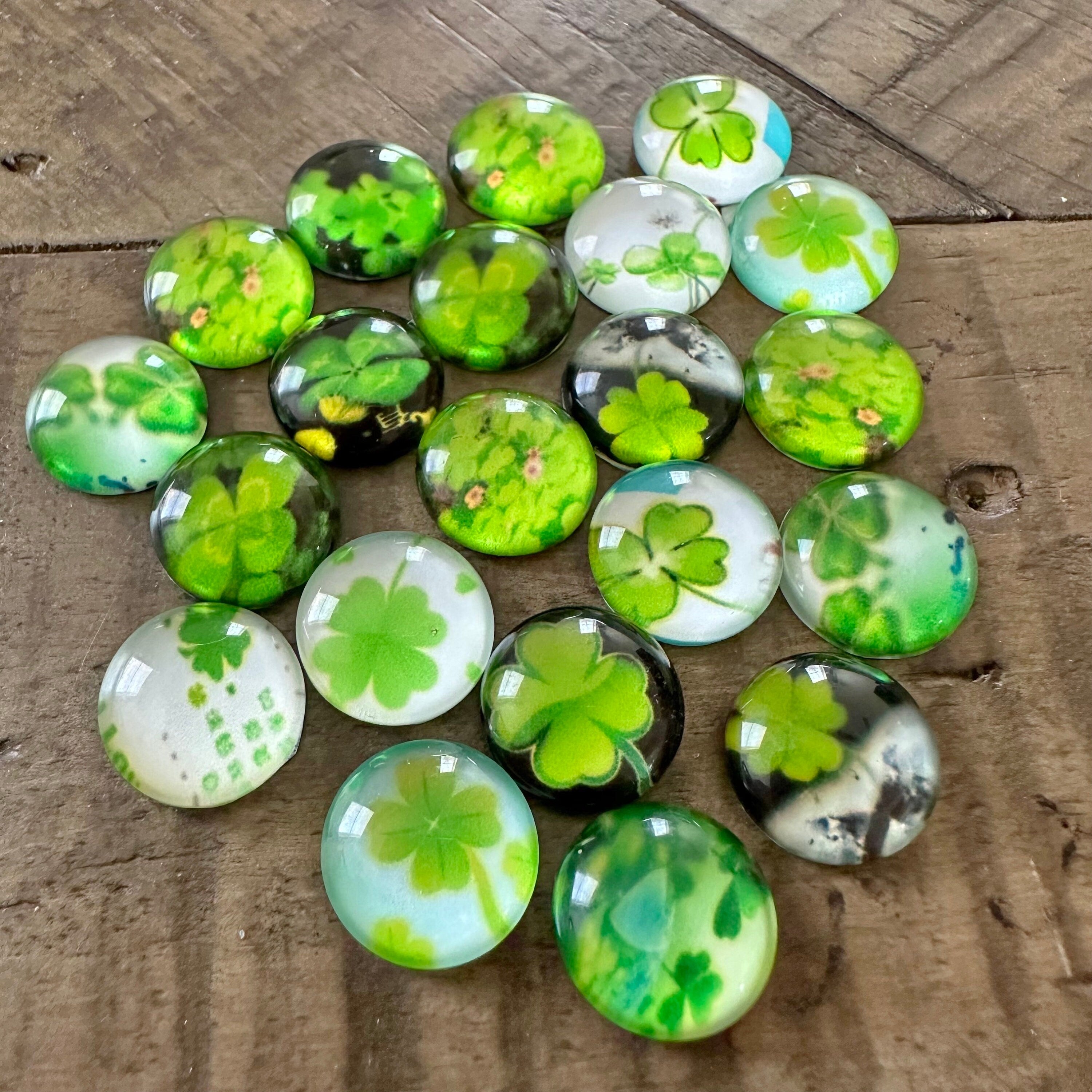 12mm 4-Leaf Clover Half Dome Cabochons - St Patricks Day - Assorted