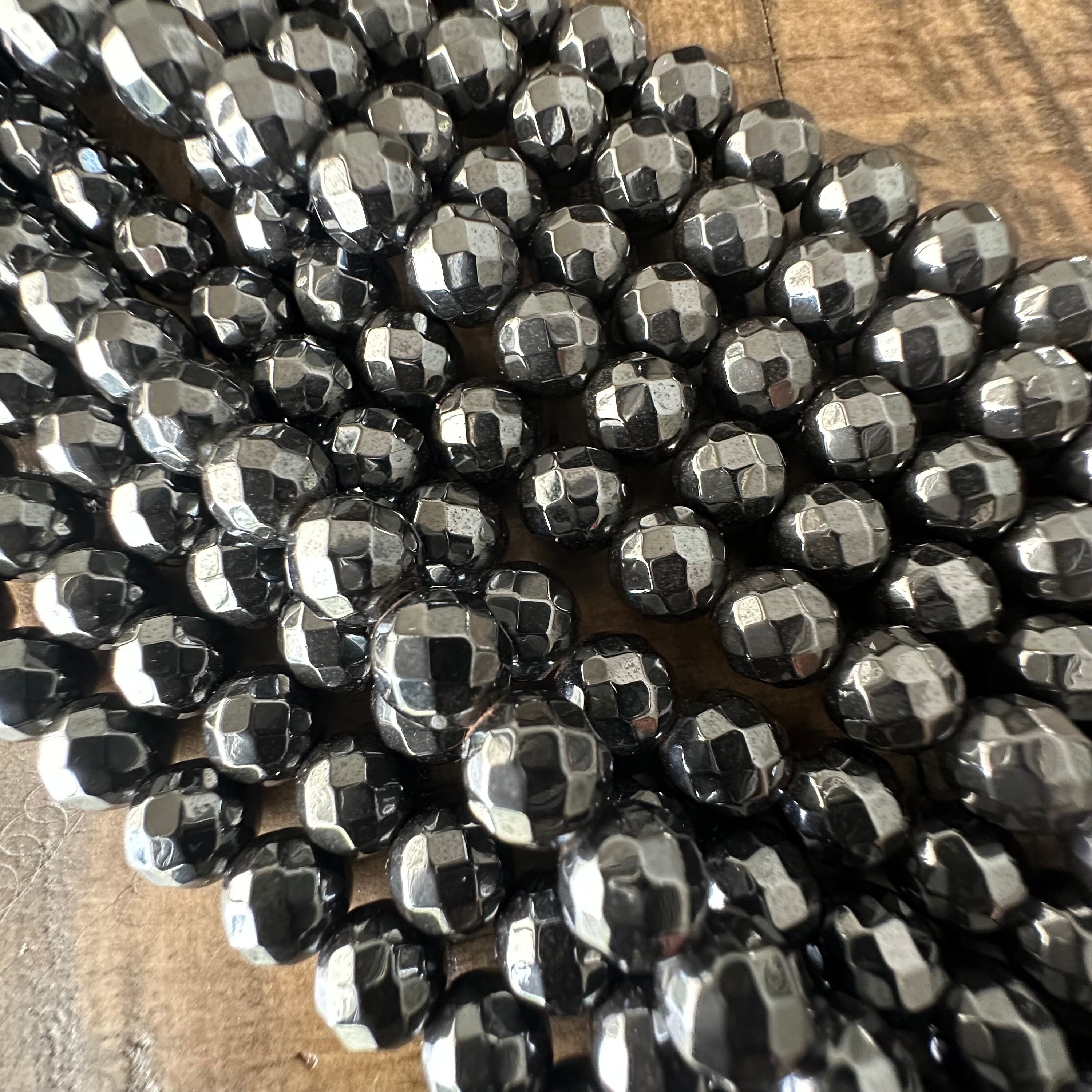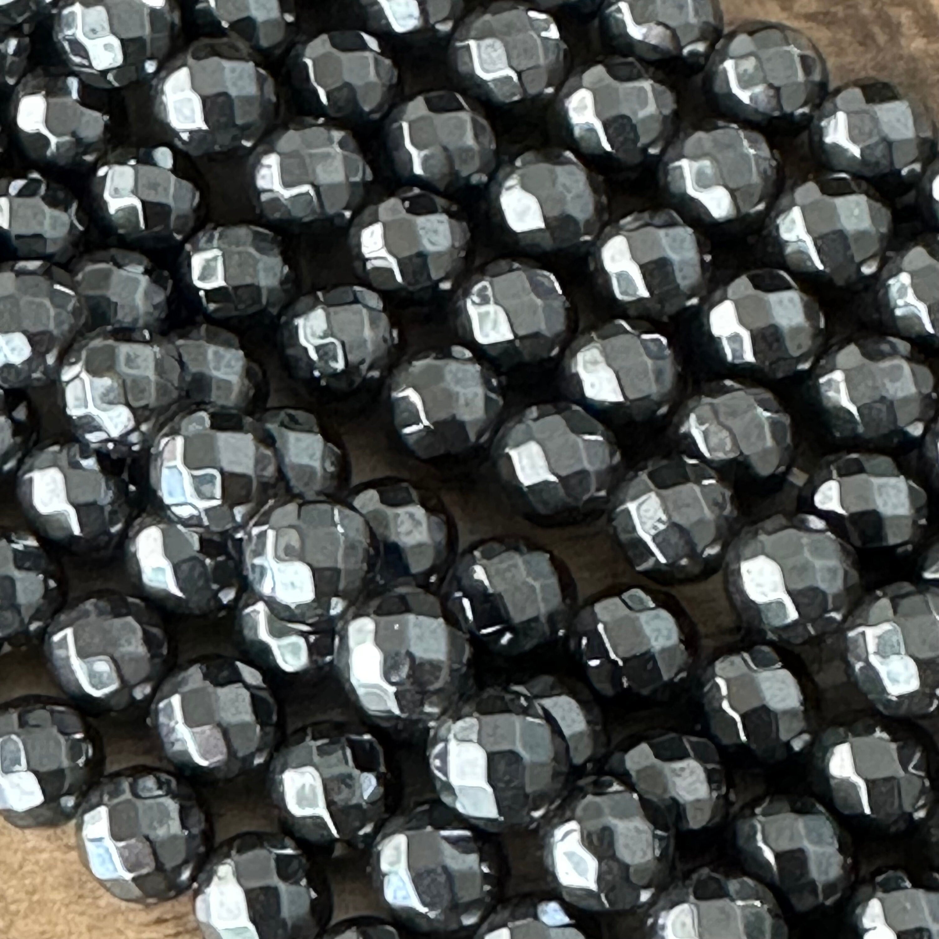 Grade AA Faceted Magnetic Hematite Bead Strand - 6mm 8mm