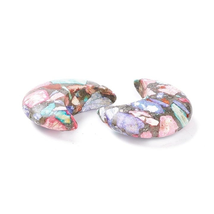 Synthetic Pyrite and Dyed Howlite Moon Cabochon,