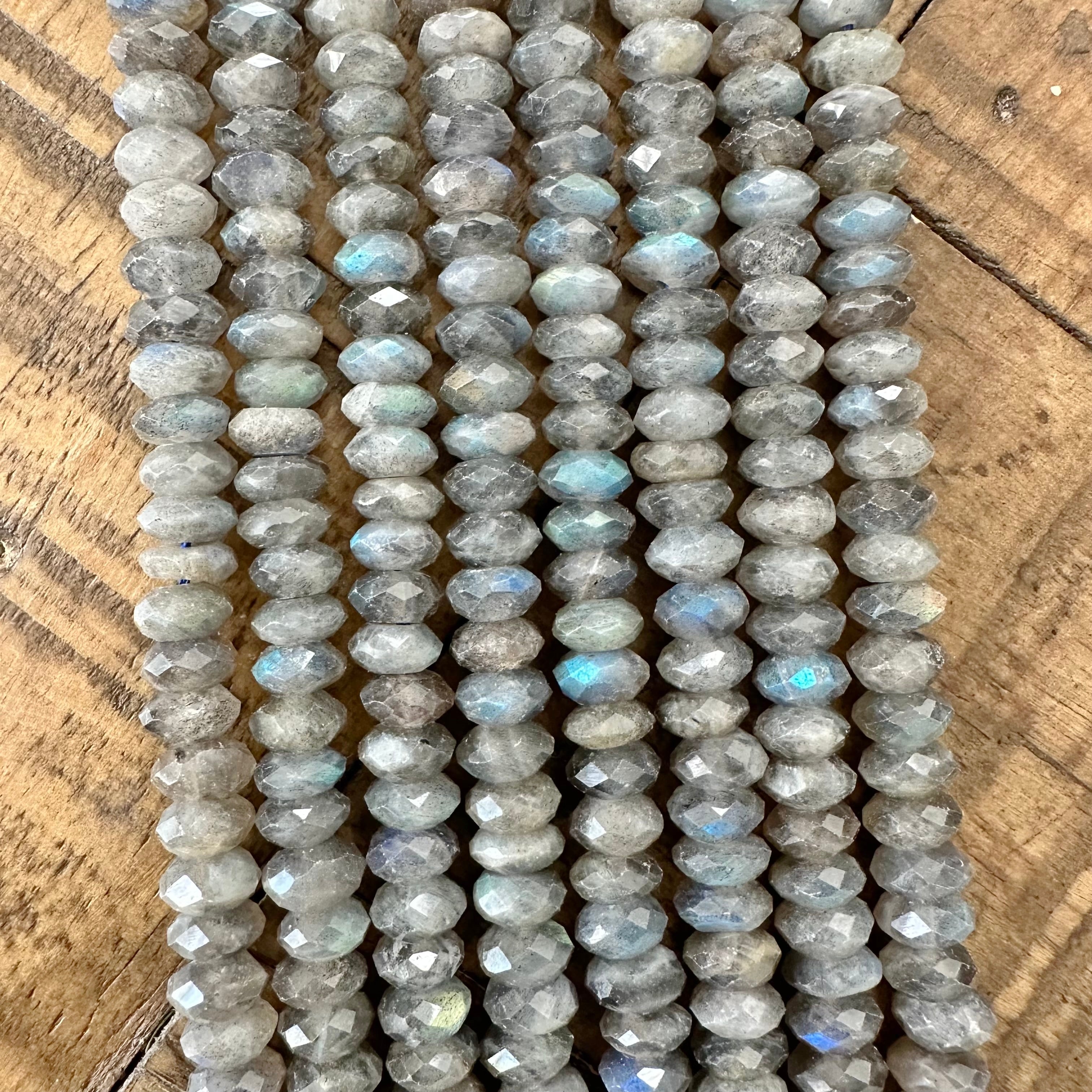6x4mm Grade AA Faceted Rondelle Labradorite Bead Strand