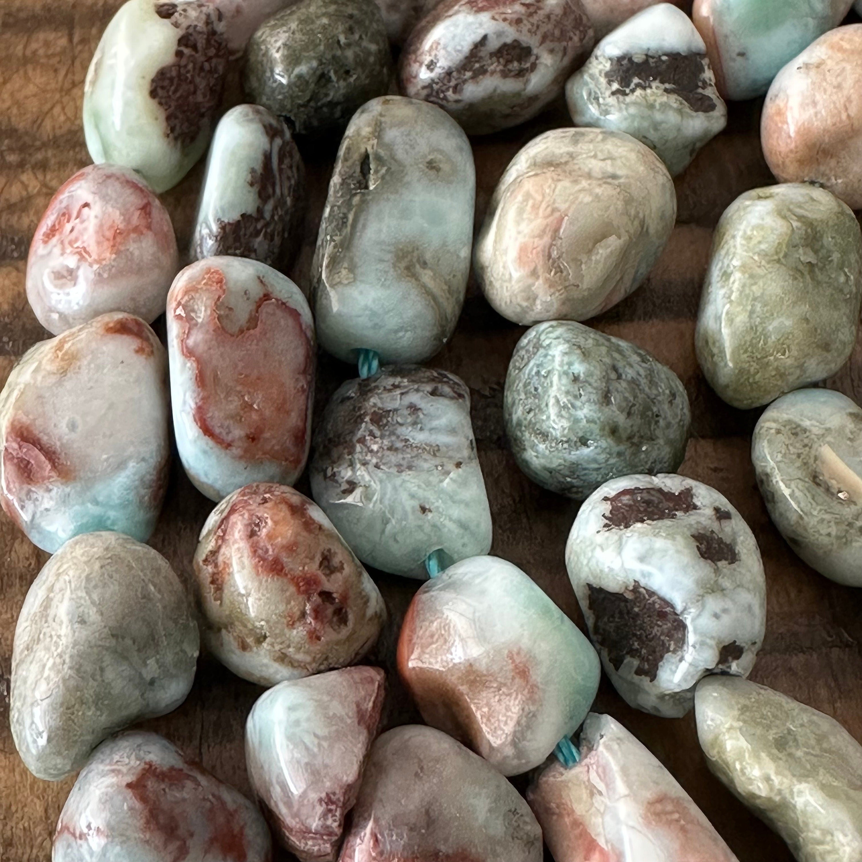 Natural Larimar Bead Strands, Tumbled Stone, Nuggets,
