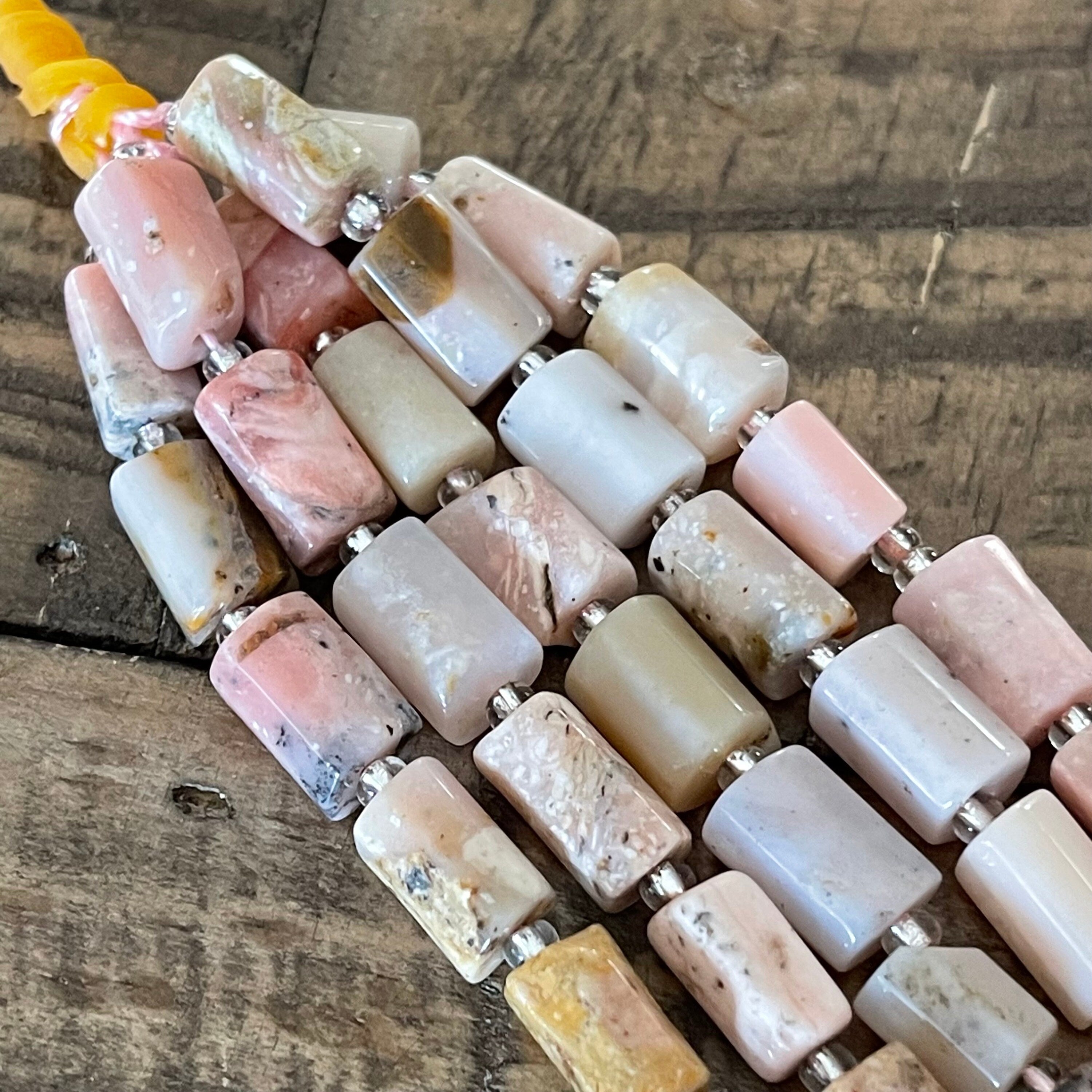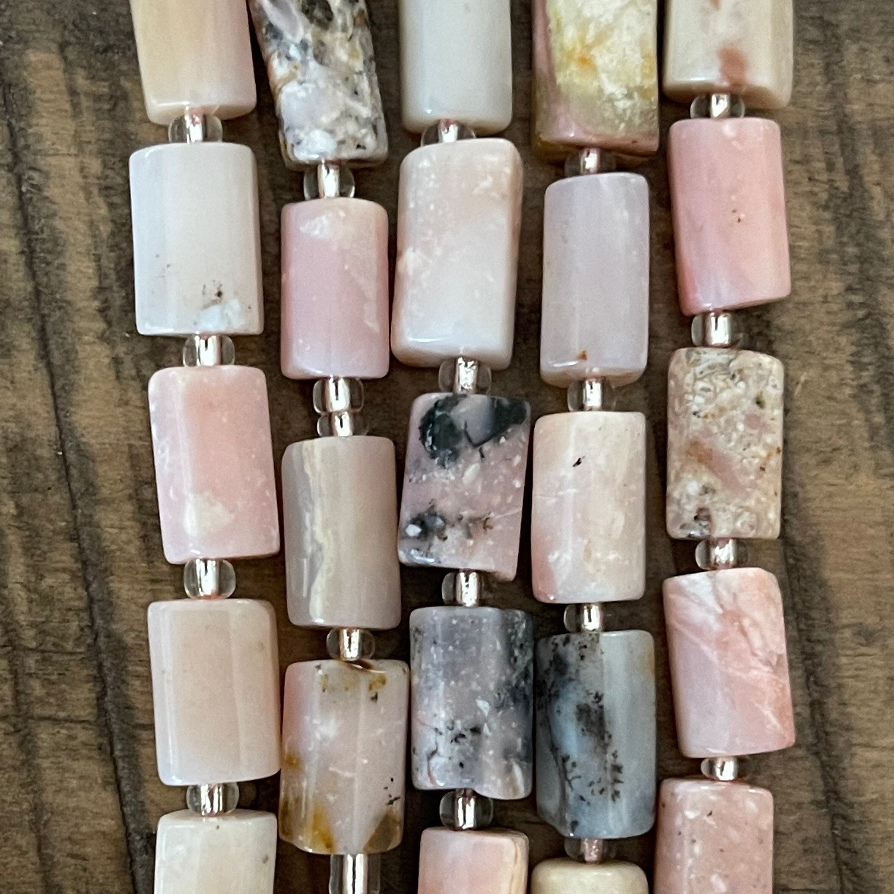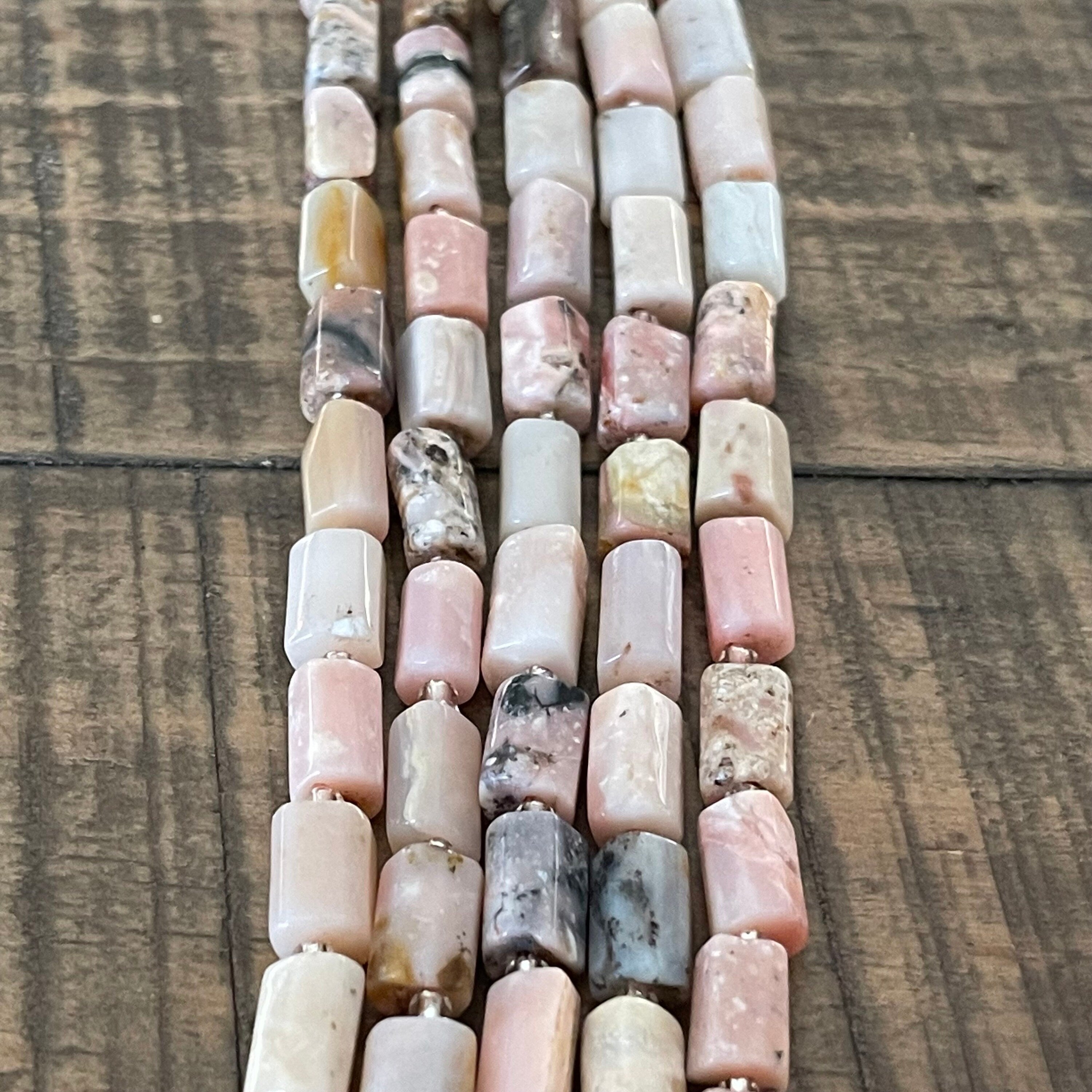 5-7mm Pink Opal Faceted Column Bead Strands - 7.5 inch strand