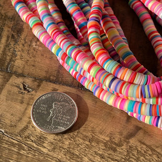 6mm Polymer Clay Beads - Disc - Flat - Rainbow - Red - Blue - Teal - Heishi