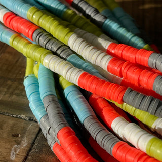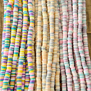 6mm 5 Color Polymer Clay Bead Strand - White - Gray - Olive - Coral - Sky Blue - Heishi