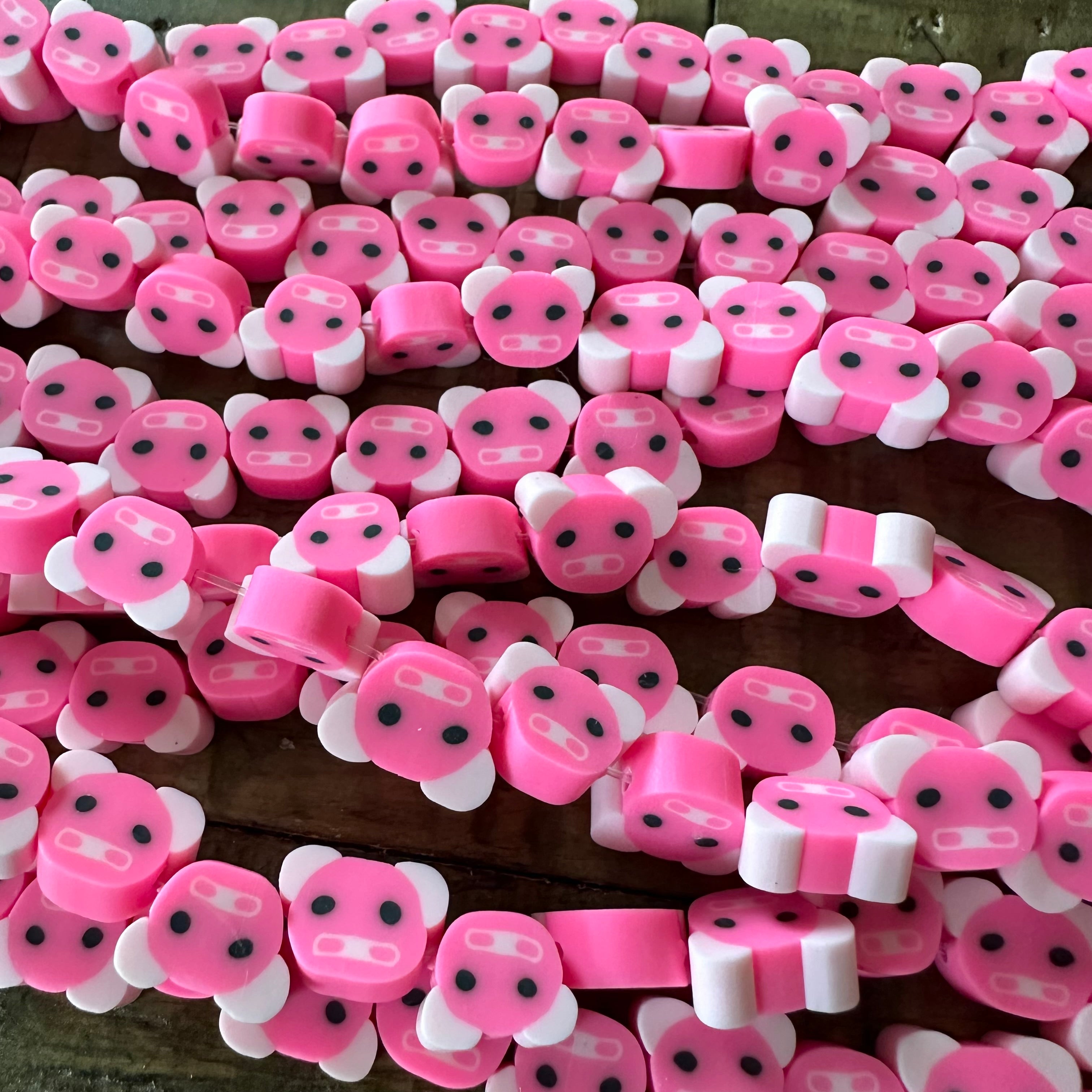Polymer Clay Bead Strands, Pig, Hot Pink