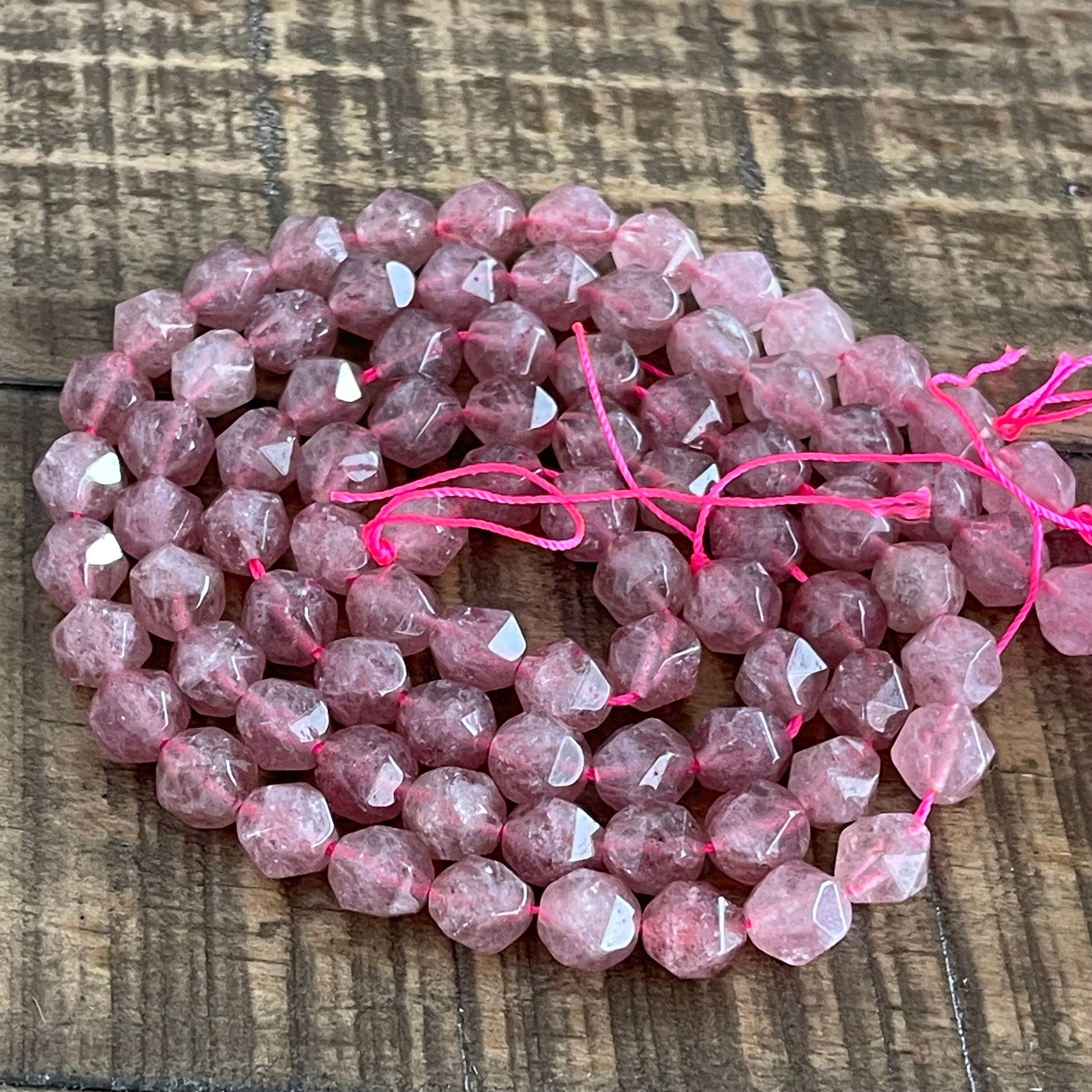 Natural Strawberry Quartz Beads Strands, Star Cut Round Beads, Faceted,