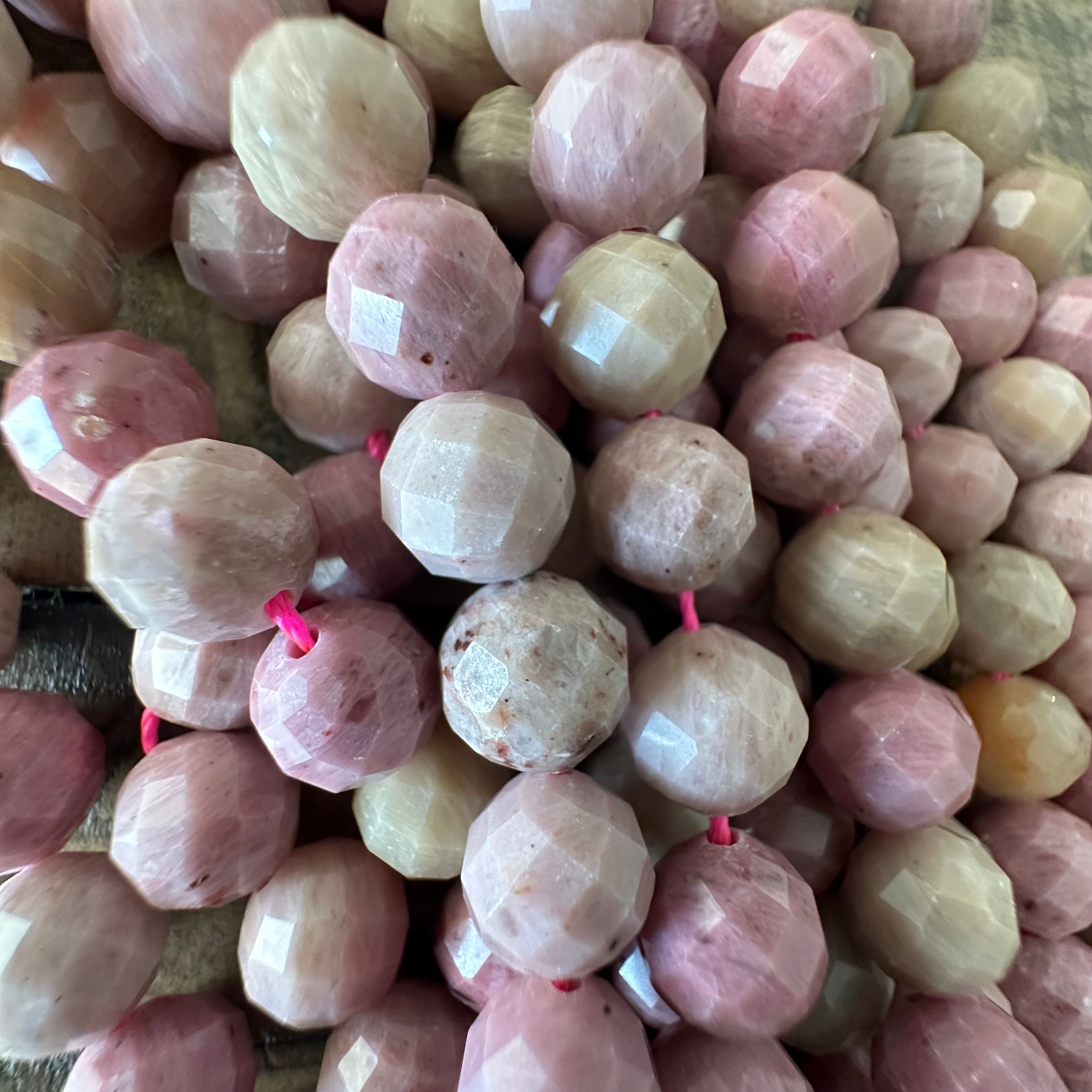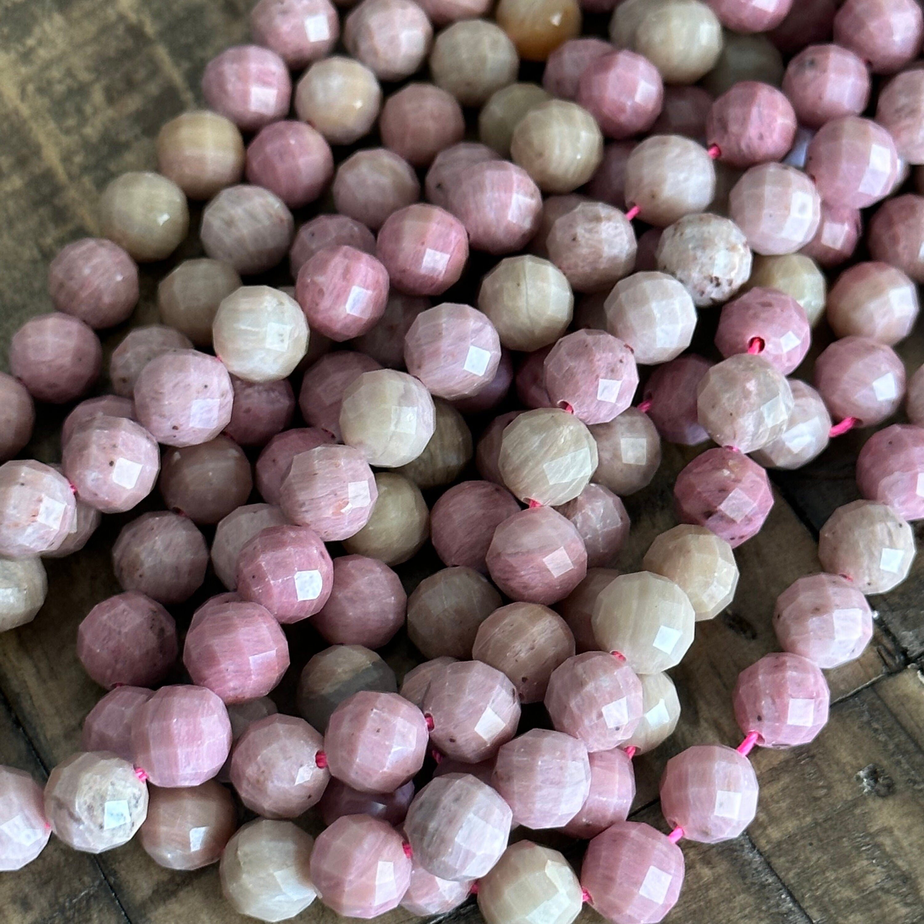 8mm Faceted Rhodochrosite Bead Strand