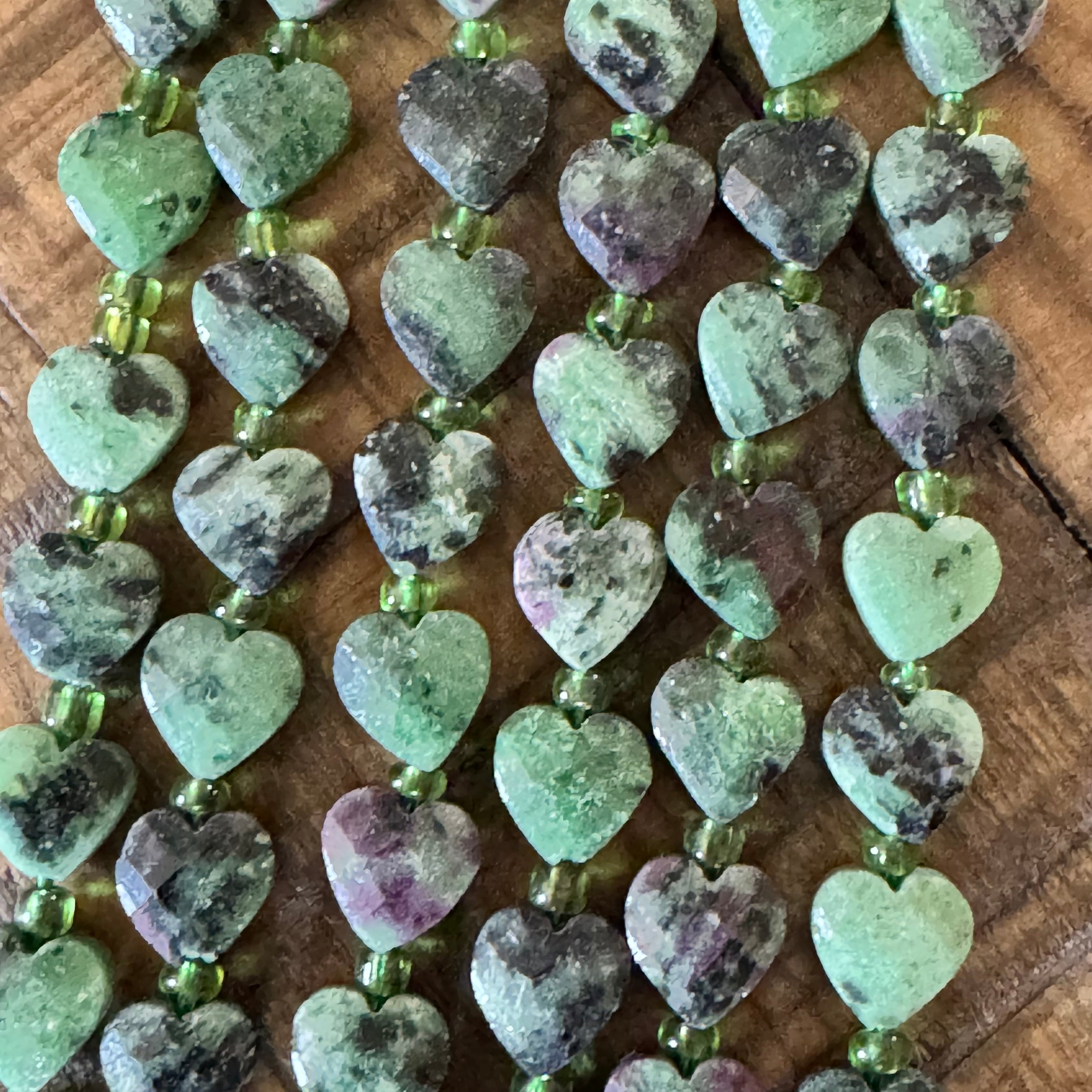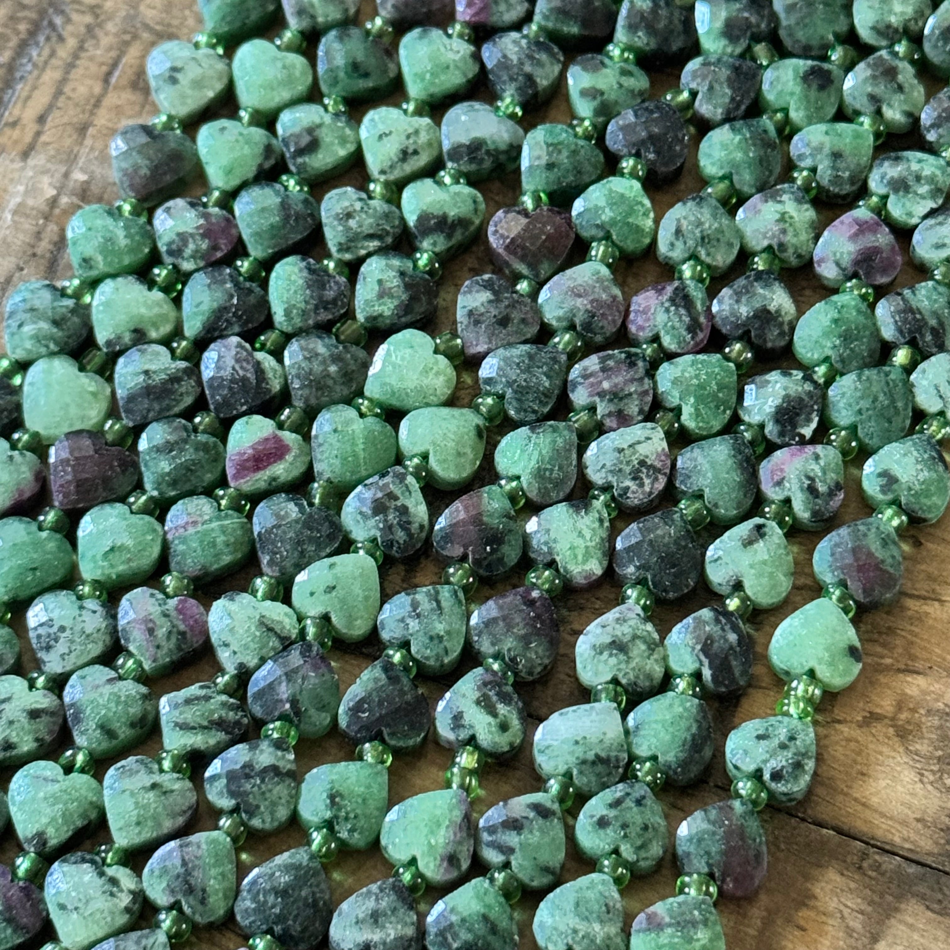 Ruby in Zoisite Faceted Heart Bead Strand - 8mm