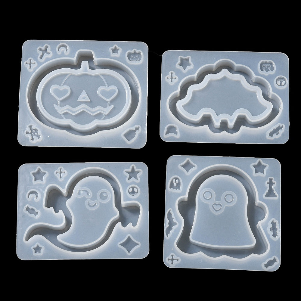 Halloween Theme Pumpkin/Bat/Ghost DIY Silicone Quicksand Molds, Shaker Molds, Resin Casting Molds, for UV Resin, Epoxy Resin Craft Making, White