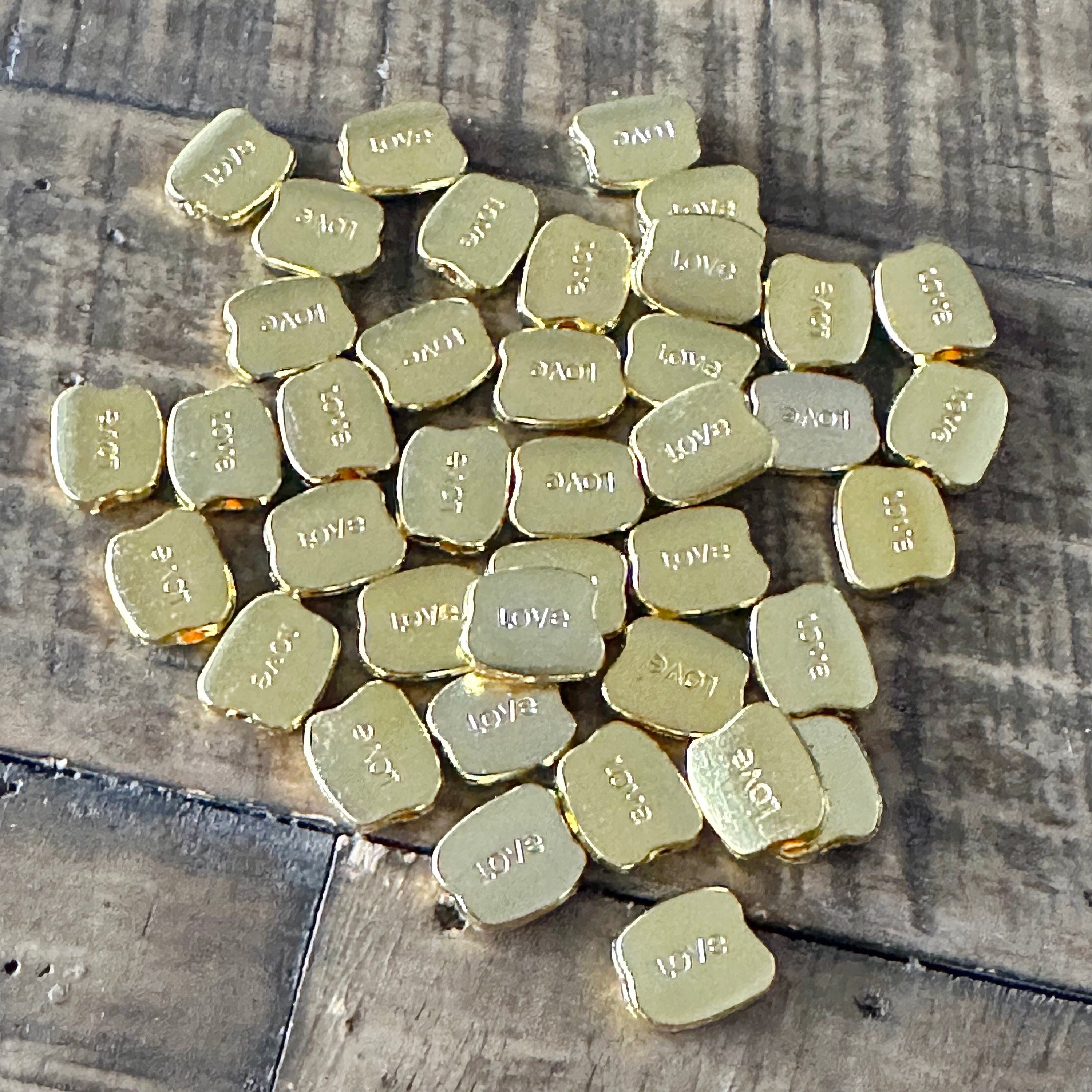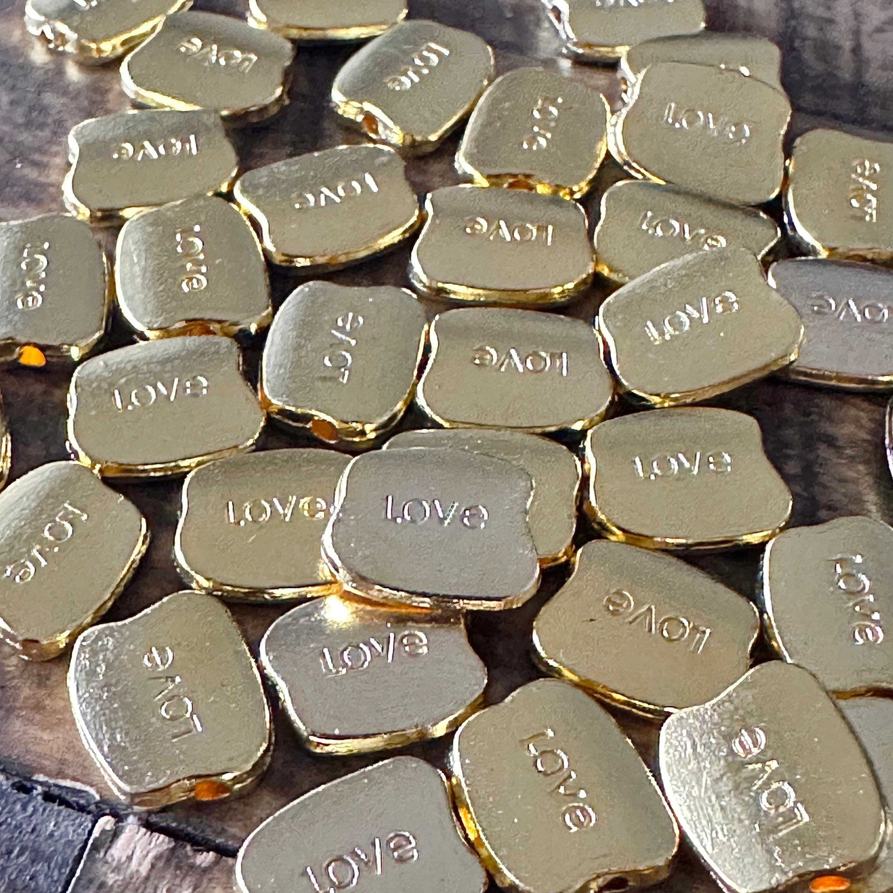 Description:Tibetan Style Alloy Beads, Cadmium Free & Lead Free, Rectangle with Love, Golden