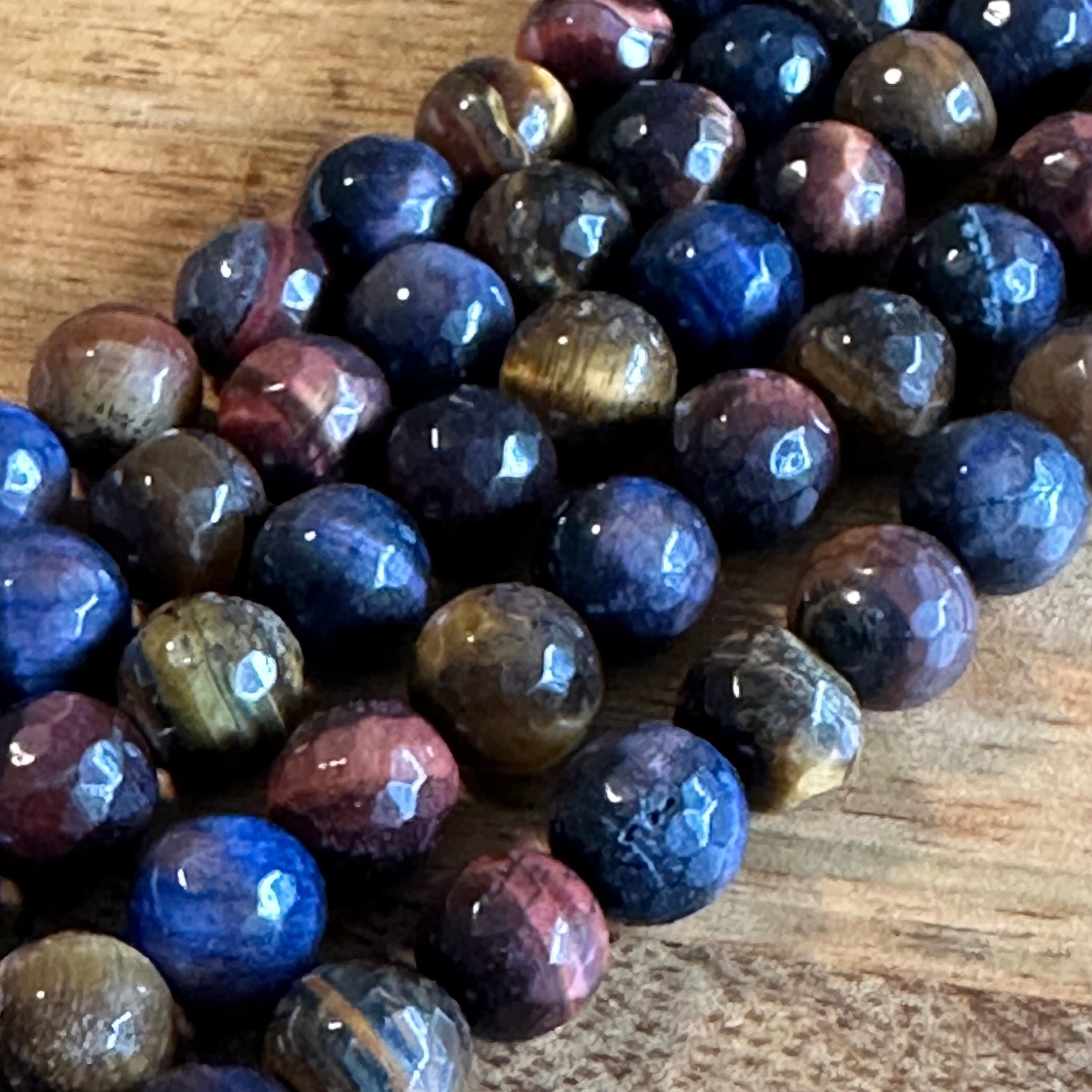 8mm Faceted Tigers Eye Bead Strand - Assorted Colors
